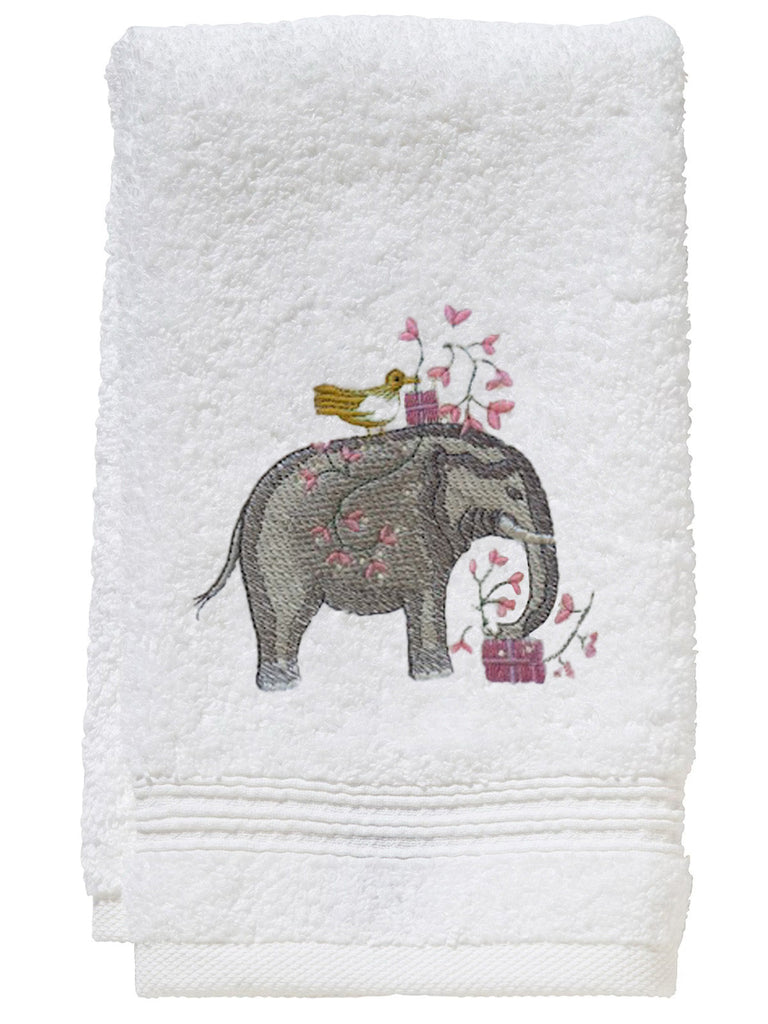 The Guest Towel in Elephant Lavender brings a charming touch to everyday rituals. Crafted in plush white cotton terry, it’s soft, absorbent, and beautifully finished with a charming embroidered detail. A cheerful addition to the powder room or bath—and even better when paired with the matching Tissue Box Cover.