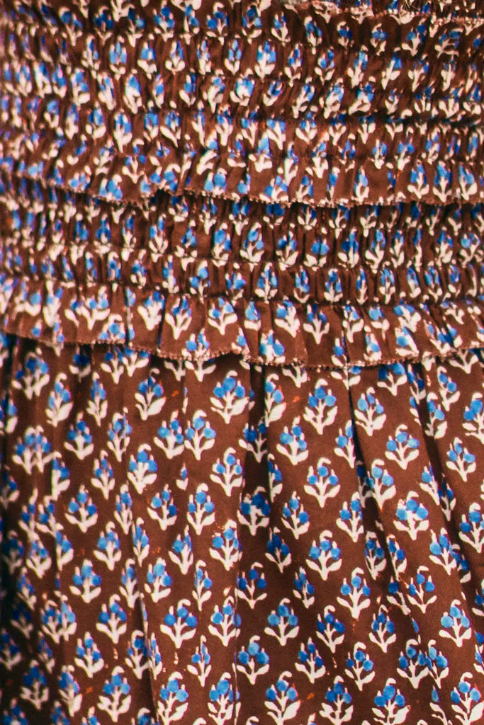 Hunter Bell strives to spark joy and inspiration with clothing that empowers women to embrace their personal style. The New York City–based brand is all about fashion-forward, fun looks, designed with detailed craftsmanship and exceptional wearability. The Gweneth Dress in Autumn Fleur Fig is poised to be a standout of the season. This sleeveless mini features a classic round neckline and an elongated smocked bodice that flatters with ease. Designed with a drop waist and flounce skirt, it moves gracefully with every step. Equal parts playful and polished, Gweneth is the dress you’ll reach for again and again.