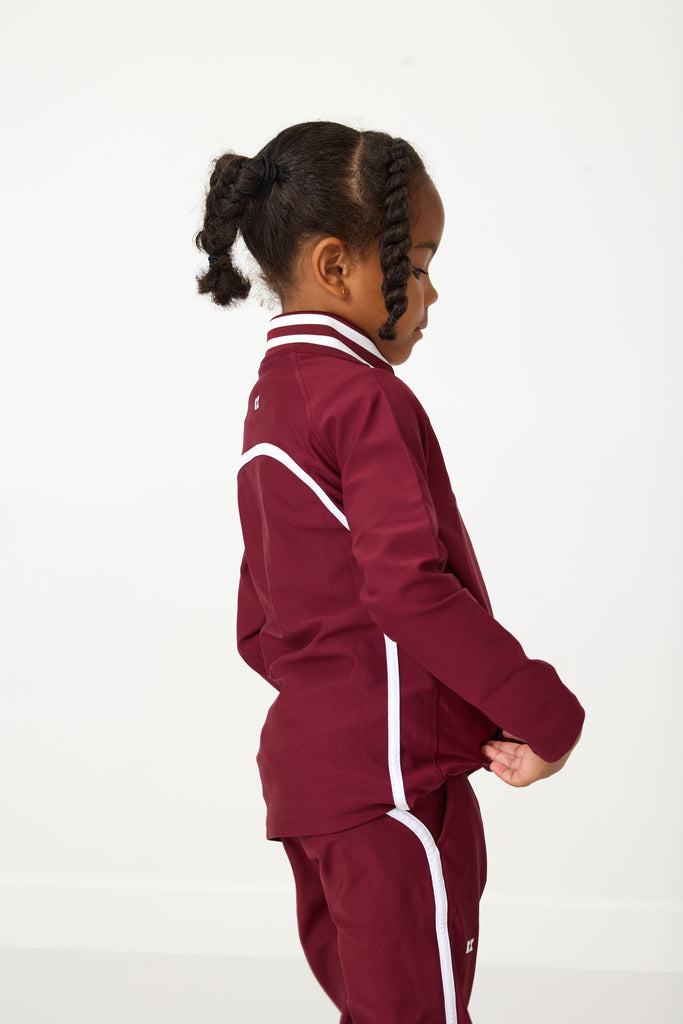 A polished blend of style and sport, Courtside Kids reimagines children’s activewear with performance fabrics, modern tailoring, and a classic athletic sensibility—made for everywhere from the playground to the country club. The Half-Zip in Maroon is crafted from buttery-soft, stretchy fabric for effortless layering and all-day comfort. Featuring a smooth finish, custom CK zipper, and tag-free design that’s sensory friendly, this versatile staple pairs easily with the brand’s Warm-Up Joggers or shorts for transitional weather days.