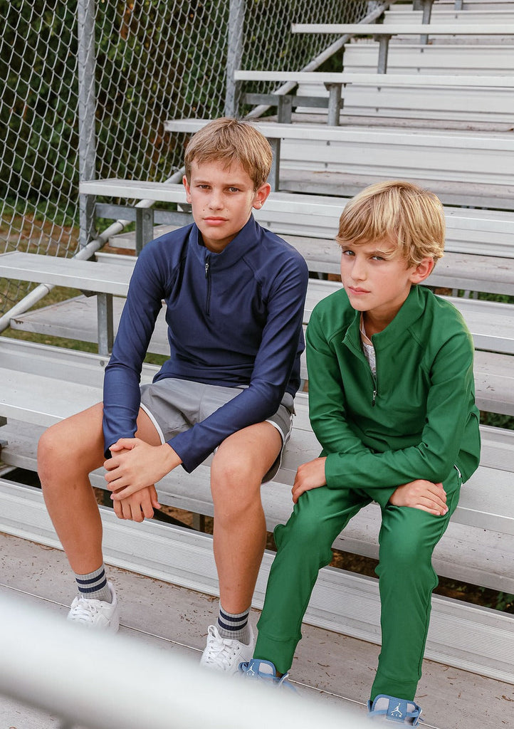 A polished blend of style and sport, Courtside Kids reimagines children’s activewear with performance fabrics, modern tailoring, and a classic athletic sensibility—made for everywhere from the playground to the country club. The Half-Zip in Navy is crafted from buttery-soft, stretchy fabric for effortless layering and all-day comfort. Featuring a smooth finish, custom CK zipper, and tag-free design that’s sensory friendly, this versatile staple pairs easily with the brand’s Warm-Up Joggers or shorts for transitional weather days.