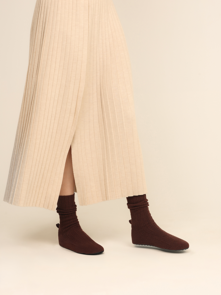 Named after East Hampton’s Pudding Hill Lane and its Revolutionary War legend, Brave Pudding honors the spirit of bold defiance. Each design reflects a modern expression of bravery—shoes that speak to where we are now and where we’re headed. The Hampton Strolls in Hazelnut is the cashmere sock, reimagined as a shoe. Designed for outdoor wear, the signature invisible sole provides wear-everywhere durability. Made with premium recycled cashmere and a cushioned insole, it embodies relaxed simplicity with a minimalist vibe, combined with unparalleled comfort. Wear it 3 ways for multiple looks in one—pulled up, scrunched down, or folded over.