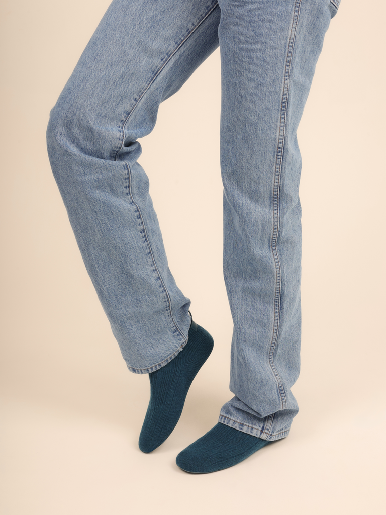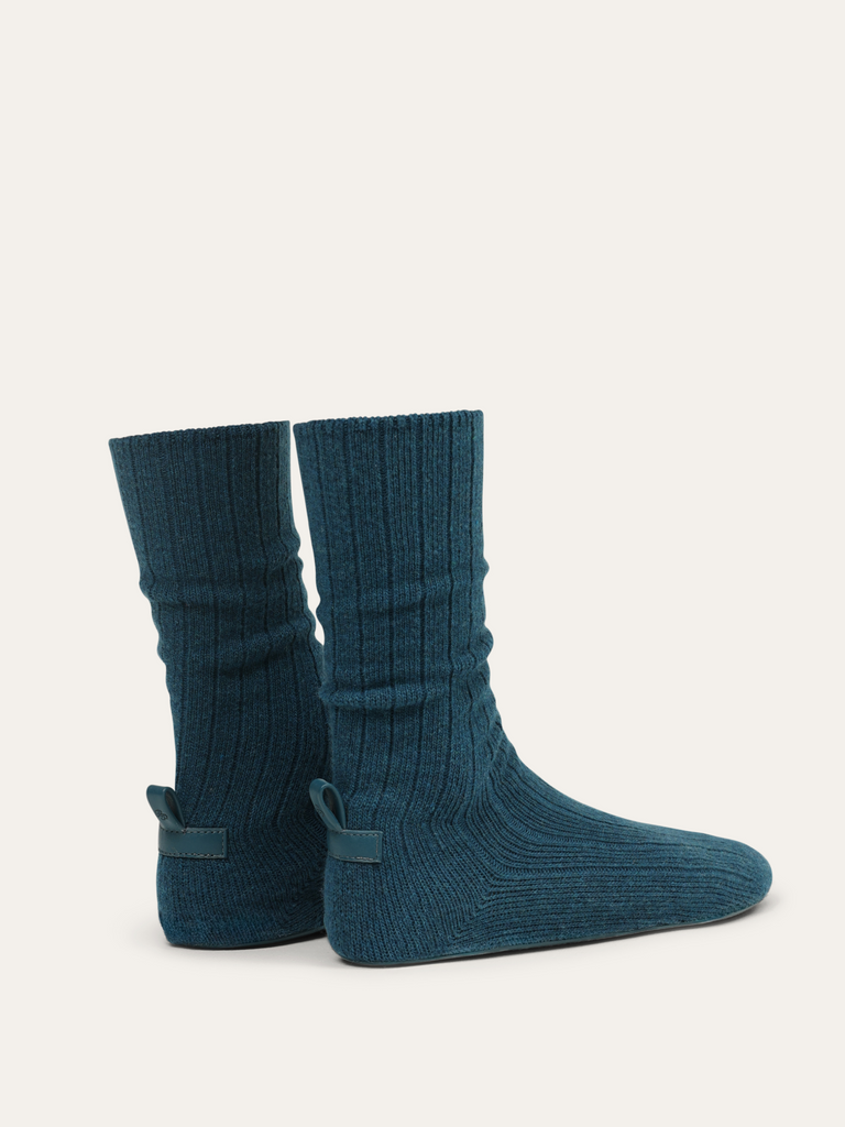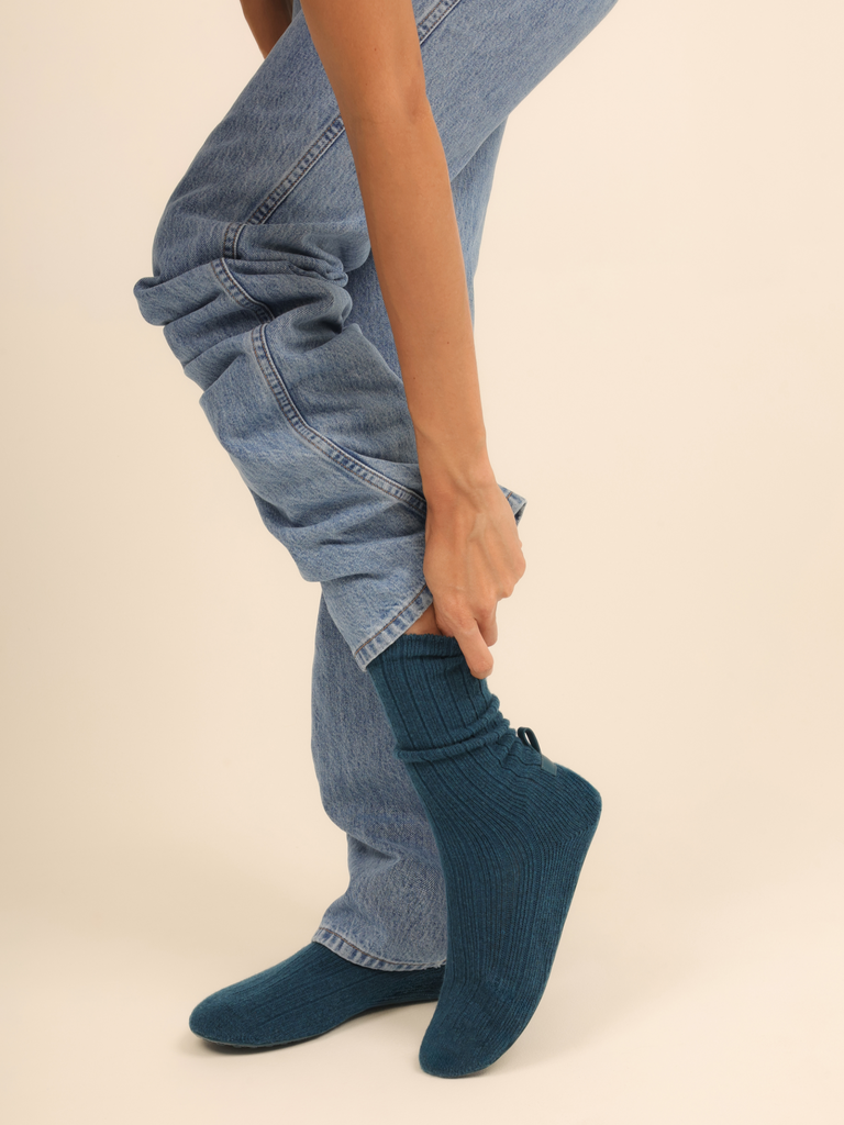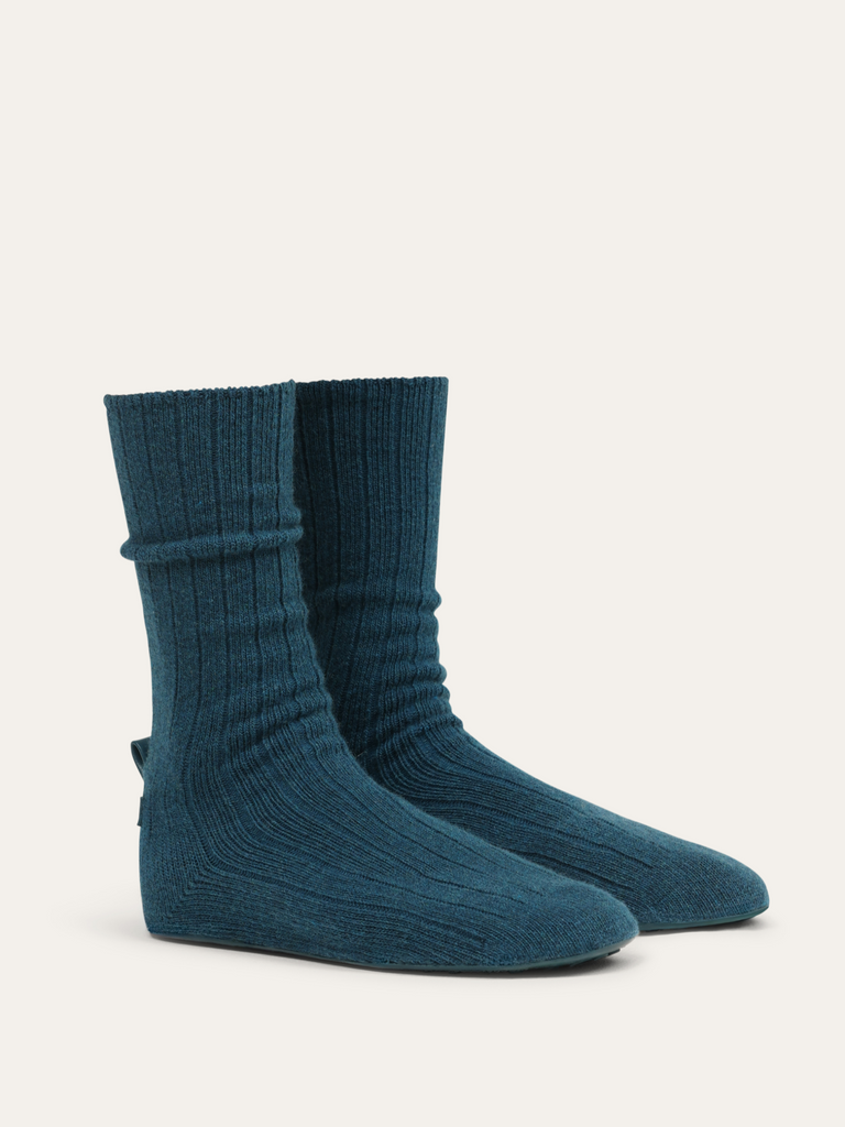 Named after East Hampton’s Pudding Hill Lane and its Revolutionary War legend, Brave Pudding honors the spirit of bold defiance. Each design reflects a modern expression of bravery—shoes that speak to where we are now and where we’re headed. The Hampton Strolls in Peacock is the cashmere sock, reimagined as a shoe. Designed for outdoor wear, the signature invisible sole provides wear-everywhere durability. Made with premium recycled cashmere and a cushioned insole, it embodies relaxed simplicity with a minimalist vibe, combined with unparalleled comfort. Wear it 3 ways for multiple looks in one—pulled up, scrunched down, or folded over.