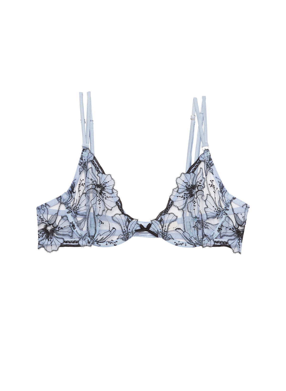 Inspired by Charles Baudelaire’s masterful collection of poetry entitled “Les Fleurs du Mal,” Jennifer Zuccarini founded Fleur du Mal with the belief that wearing beautiful lingerie should be an everyday affair. Tastefully provocative, the luxury brand has amassed a cult following of devotees who adore the sultry and empowering pieces. The Harper Embroidery Demi Bra features a stunning floral embroidery on sheer tulle demi cups. Boasting silk adjustable double straps and back hook and eye closure. Unlined. Pair with the matching Harper Embroidery V-String and Garter Belt.