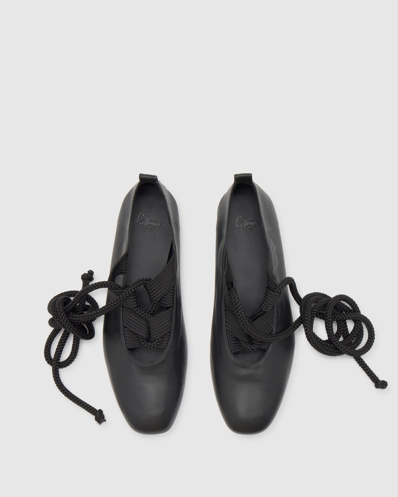 Founded in 1927, Castañer has elevated the espadrille into a sophisticated symbol of timeless design. With a commitment to craftsmanship, tradition, and natural materials, the brand continues to blend heritage with innovation, earning global recognition while staying true to its authentic roots. The Havana in Black reinvents the ballet flat with modern simplicity, crafted in smooth nappa leather with lace-up fastening. A cushioned insole and lightweight sole ensure both elegance and comfort for everyday wear.