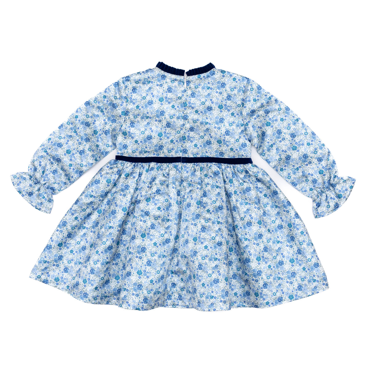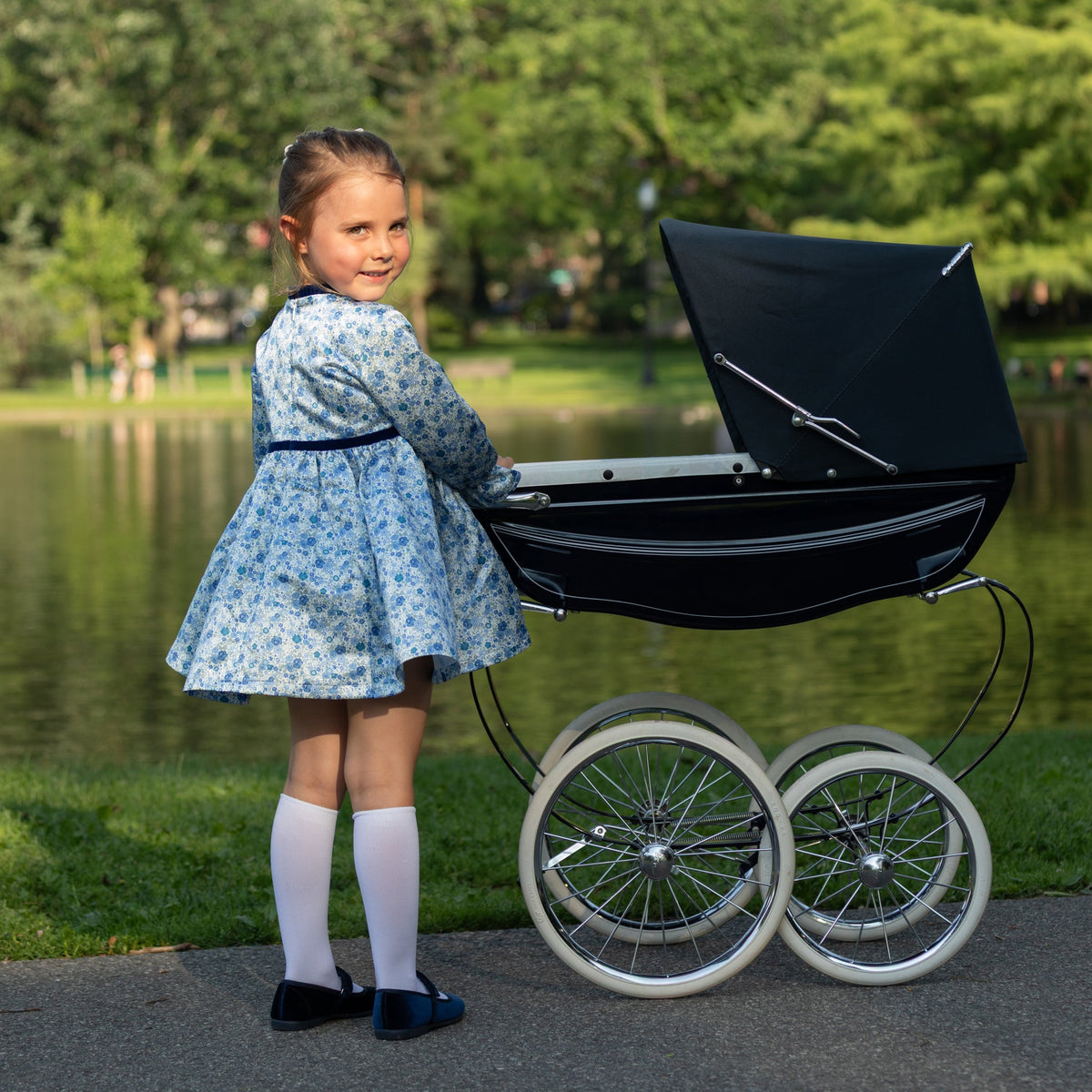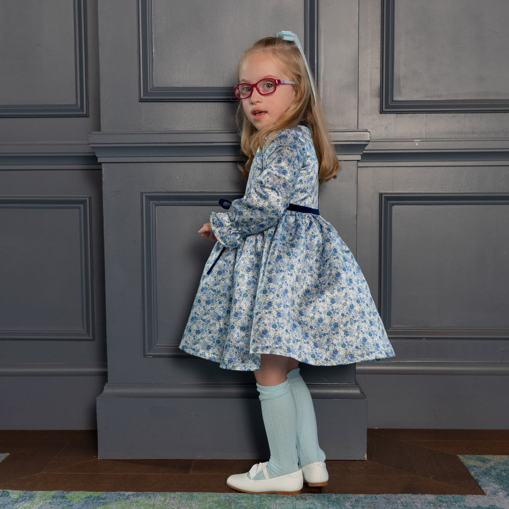 A celebration of the spirit of girlhood, the updated classics from Henry Duvall are curious, imaginative, and sweet. Full of character and playful details, these are easy-to-care-for clothes that families will love. Sweet, classic, and made for twirling—the Hazel Dress in Prescott Petals is a fall favorite for girls of all ages. Crafted in Prescott Petals, a delicate blue floral that coordinates seamlessly with Prescott Plaid, this vintage-inspired silhouette is finished with a charming Back Bay Blue Velvet bow at the waist. Coordinates beautifully with sibling pieces in Prescott Petals, Prescott Plaid, or Back Bay Blue Velvet, and pairs with the Jackie Set for a coordinating mother-daughter look.