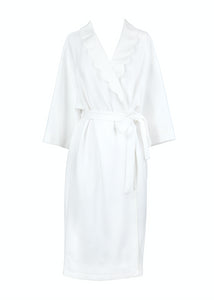 The charming Helen Robe combines a classic style with an elegant satin scallop collar creating what we think is the perfect robe. Made with a lightweight quilted pique the 3/4 length sleeves and side tie attached belt make this robe a show stopper.