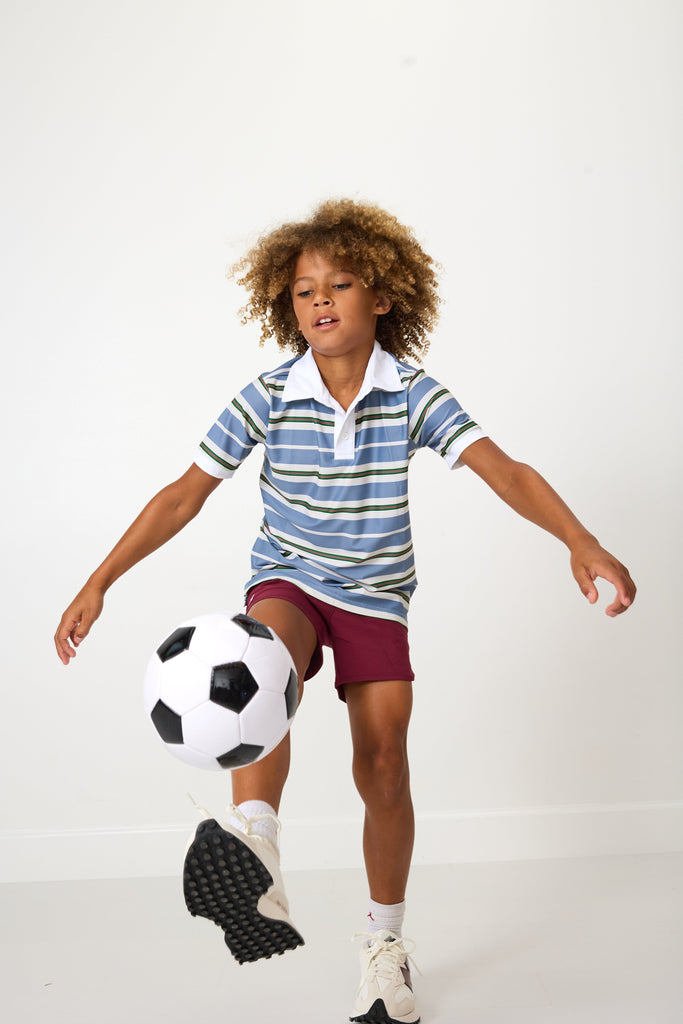 A polished blend of style and sport, Courtside Kids reimagines children’s activewear with performance fabrics, modern tailoring, and a classic athletic sensibility—made for everywhere from the playground to the country club. The Heritage Stripe Polo Shirt combines timeless preppy style with modern performance features. Crafted from smooth, moisture-wicking fabric that feels cool to the touch, this versatile polo keeps active boys comfortable, polished, and ready for any occasion—from class to the course to post-game celebrations.
