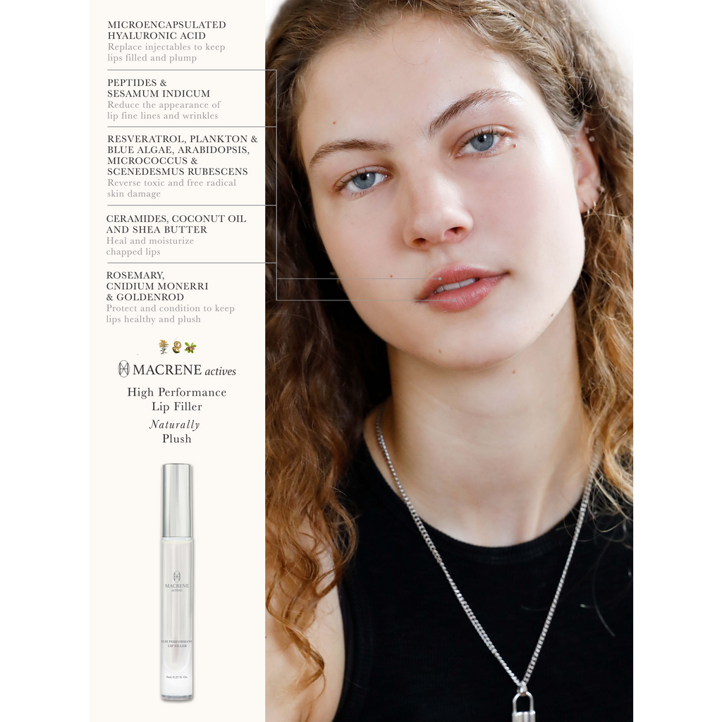 The first luxury skincare to deliver the medicinal properties from Greece cultivated over thousands of years. Dr. Macrene Alexiades MD PhD Dermatologist Scientist designed MACRENE actives to replace cosmetic procedures with clean, vegan, dermatologic, and clinically proven formulas packaged in glass. The High Performance Lip Filler plumps, moisturizes, and protects from stressors while boosting lip plushness. This naturally plush lip filler formula is packed with organic plant oils, hyaluronic acids, peptides and antioxidants to help reduce the appearance of lip fine lines while boosting injection-free plushness.