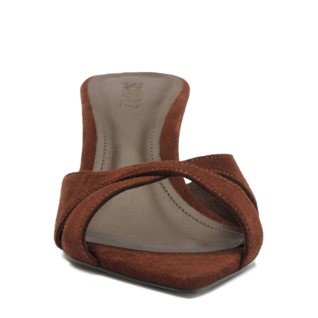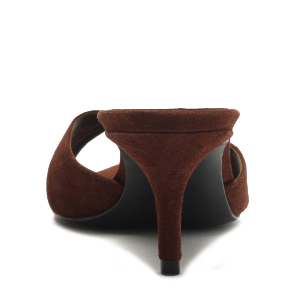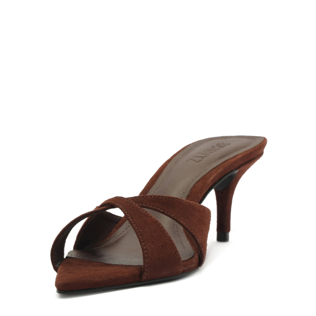 Founded in 1995 by Alexandre Birman, Schutz redefines attainable luxury with its stylish footwear. With each new release, the brand delivers of-the-moment collections, defined by confident, bold, designs around which entire outfits can be built. The Hilda Leaf Mule Suede Sandal in Root Brown delivers sharp lines and effortless energy. With a pointed toe, sculptural mid-heel, and crossover suede straps, this slip-on silhouette brings modern edge and confidence to every step.