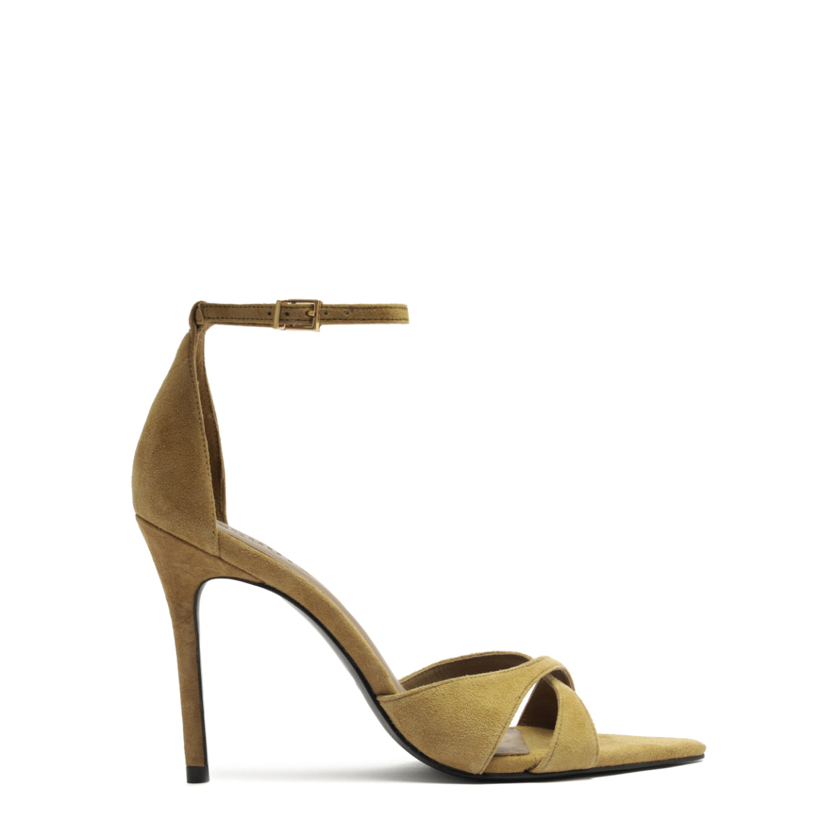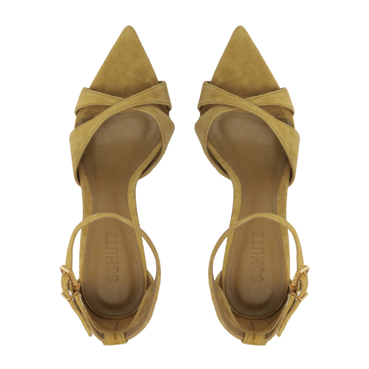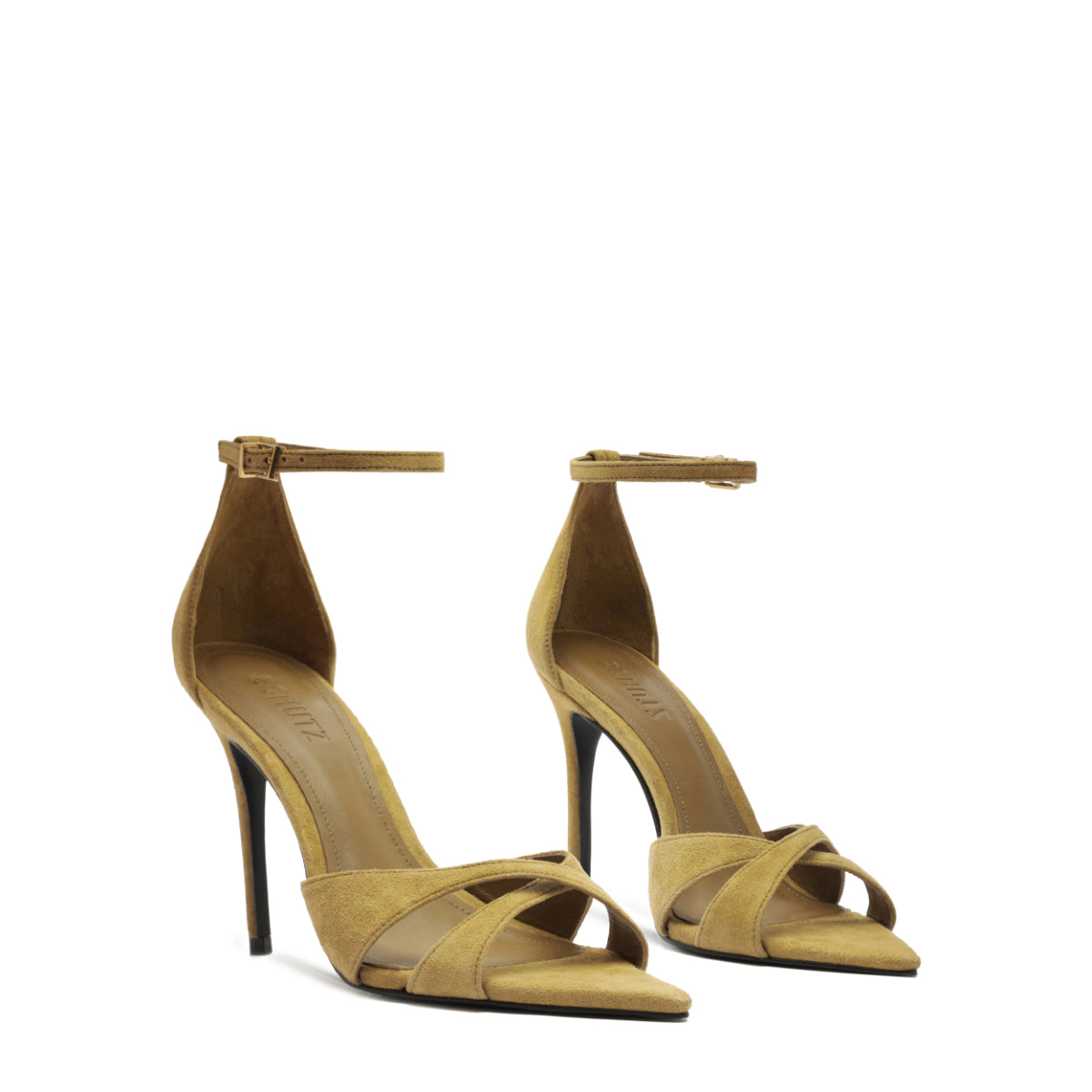 Founded in 1995 by Alexandre Birman, Schutz redefines attainable luxury with its stylish footwear. With each new release, the brand delivers of-the-moment collections, defined by confident, bold, designs around which entire outfits can be built. The Hilda Leaf Suede Sandal in Dried Pistachio delivers strong lines and elevated edge. Featuring crisscross suede straps, a pointed toe, and a wraparound ankle buckle, this stiletto sandal was made to lead—bold, modern, and undeniably confident.