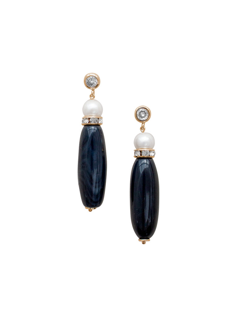 The Hollis Earrings in Black combine polished onyx gemstones with luminous freshwater pearls, anchored by a gold-plated rhinestone post for a touch of subtle sparkle. A striking contrast of texture and tone, designed with sculptural elegance in mind.