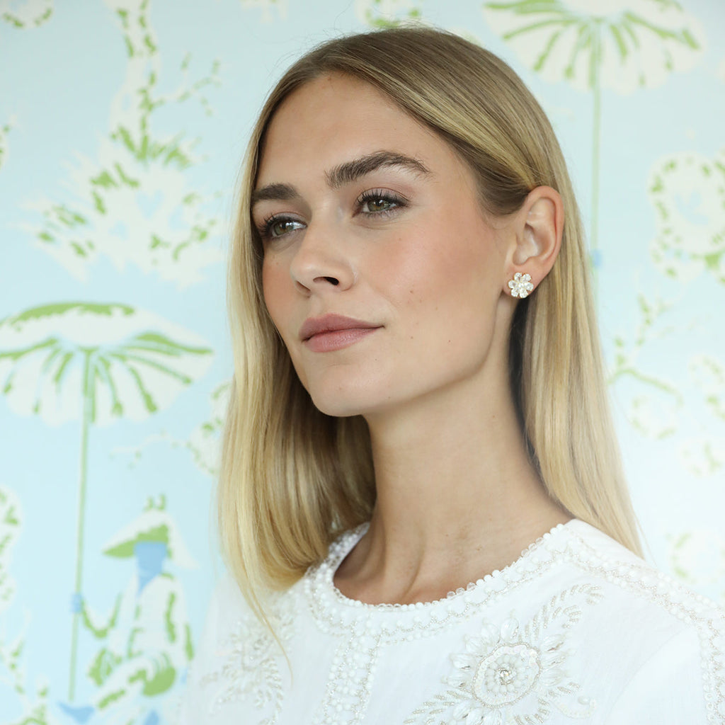 14k gold–dipped Holly stud. Cubic zirconia. Post backing.