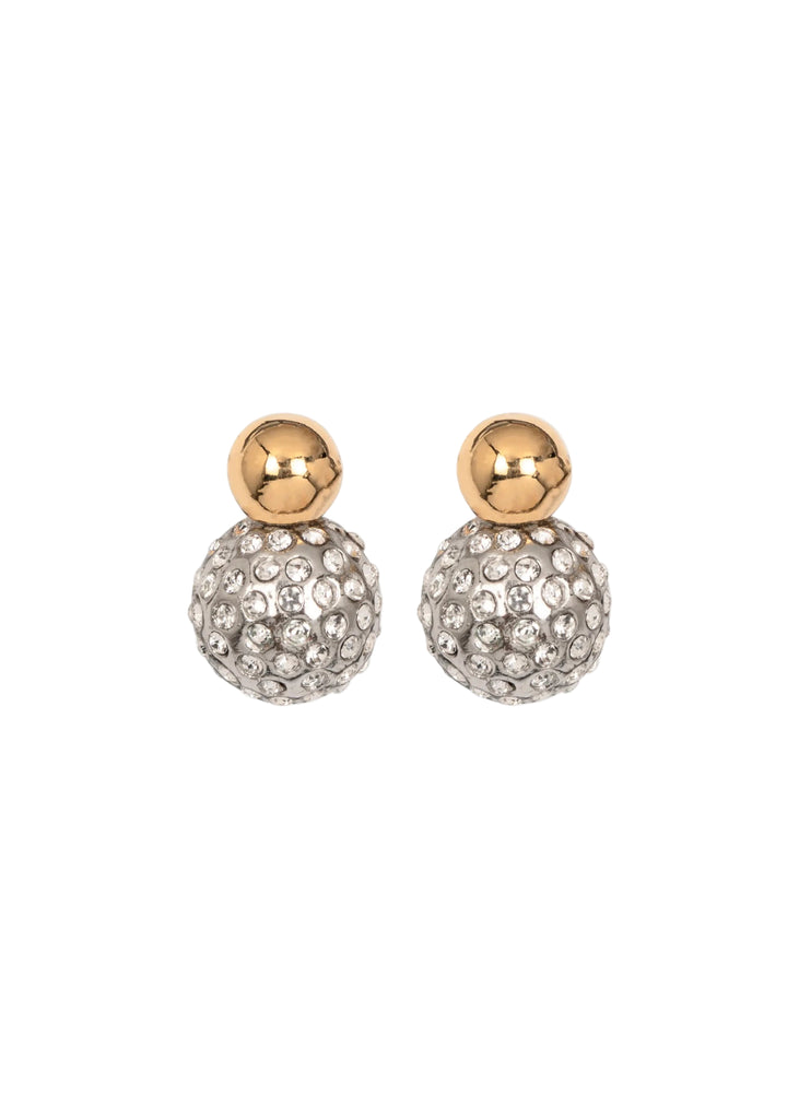 18K gold- and rhodium-plated brass. Hand-carved orbs with fine Austrian pavé crystals. Mixed-metal finish for versatile styling. Handmade in New York City.