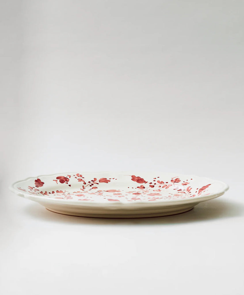 The Flora Small Oval Platter in Burgundy reflects the refined artistry and historic inspiration behind the Flora Collection. Influenced by 18th-century Italian ceramics, Antonello Radi’s design captures timeless beauty through graceful form and delicate hand-painted floral motifs. Handmade in Italy from rich red terracotta, this platter is both functional and decorative—a testament to craftsmanship and enduring elegance.