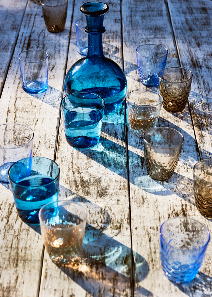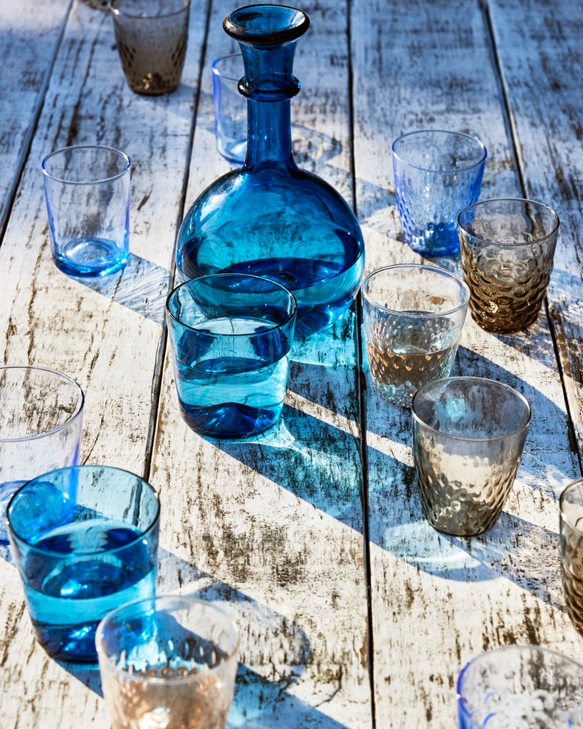 Handblown glass. Part of the Pienza glassware collection. Each piece is unique due to its handmade nature. Made in Tuscany, Italy.