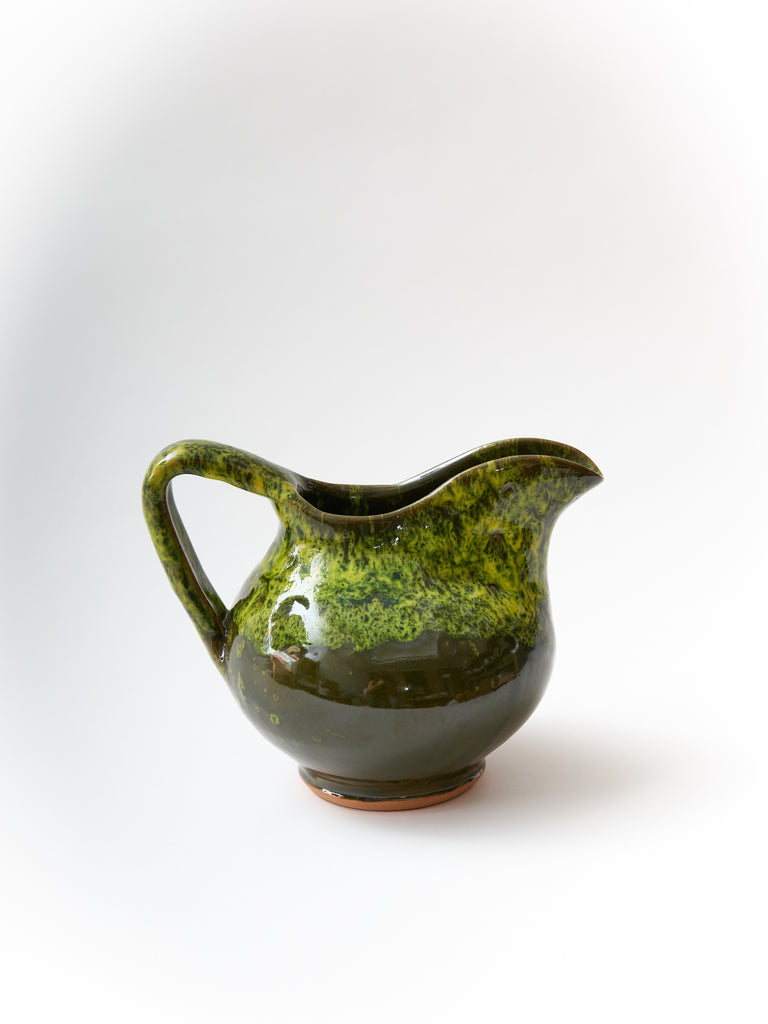 The Moss Terracotta Pitcher captures the serene beauty of the Umbrian landscape. Inspired by the moss-covered forests (*bosco*) that blanket the region’s rolling hills, Antonello Radi developed a distinctive glaze technique on red terracotta to evoke their organic textures and tones. Each plate is handmade and glazed in Italy, resulting in subtle variations that make every piece a one-of-a-kind expression of natural artistry—equally suited to refined or rustic tablescapes.