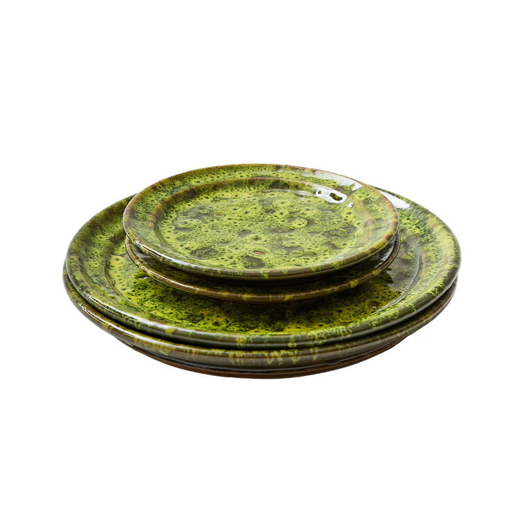 The Moss Terracotta Side Plate captures the serene beauty of the Umbrian landscape. Inspired by the moss-covered forests (*bosco*) that blanket the region’s rolling hills, Antonello Radi developed a distinctive glaze technique on red terracotta to evoke their organic textures and tones. Each plate is handmade and glazed in Italy, resulting in subtle variations that make every piece a one-of-a-kind expression of natural artistry—equally suited to refined or rustic tablescapes.