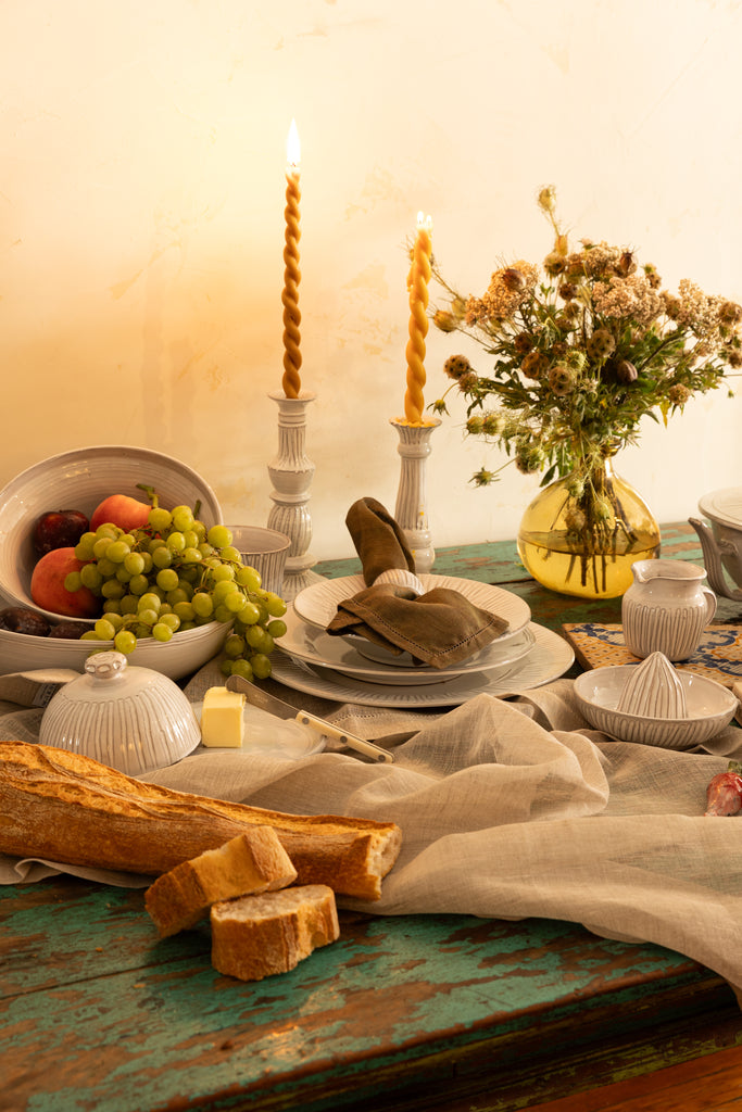 The Radi Simple Dinner Plate embodies understated elegance through its timeless design and artisanal craftsmanship. Hand-thrown from Italian stoneware, each plate reveals subtle variations in form and glaze that speak to the maker’s touch. Ideal for both everyday dining and special occasions, this made-to-order piece brings warmth and authenticity to any table setting.