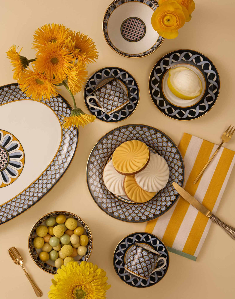 The inspiring authority on feel-good fashion, energy elevation, and the ebullient Italian way of life, La DoubleJ was launched in 2015 by J.J. Martin. Beginning as a magazine, the brand soon took flight in 2017 with original collections of new fashion and homeware with in eye-popping prints, cut with easy glamour. The Impero Espresso Cup Set in Odysseus Midnight offers a sleeker, more modern silhouette while preserving the opulent spirit of La DoubleJ’s tableware. Crafted in fine porcelain by expert Italian artisans, each cup and saucer is finished with hand-painted 18K gold trim and designed to elevate everyday rituals.