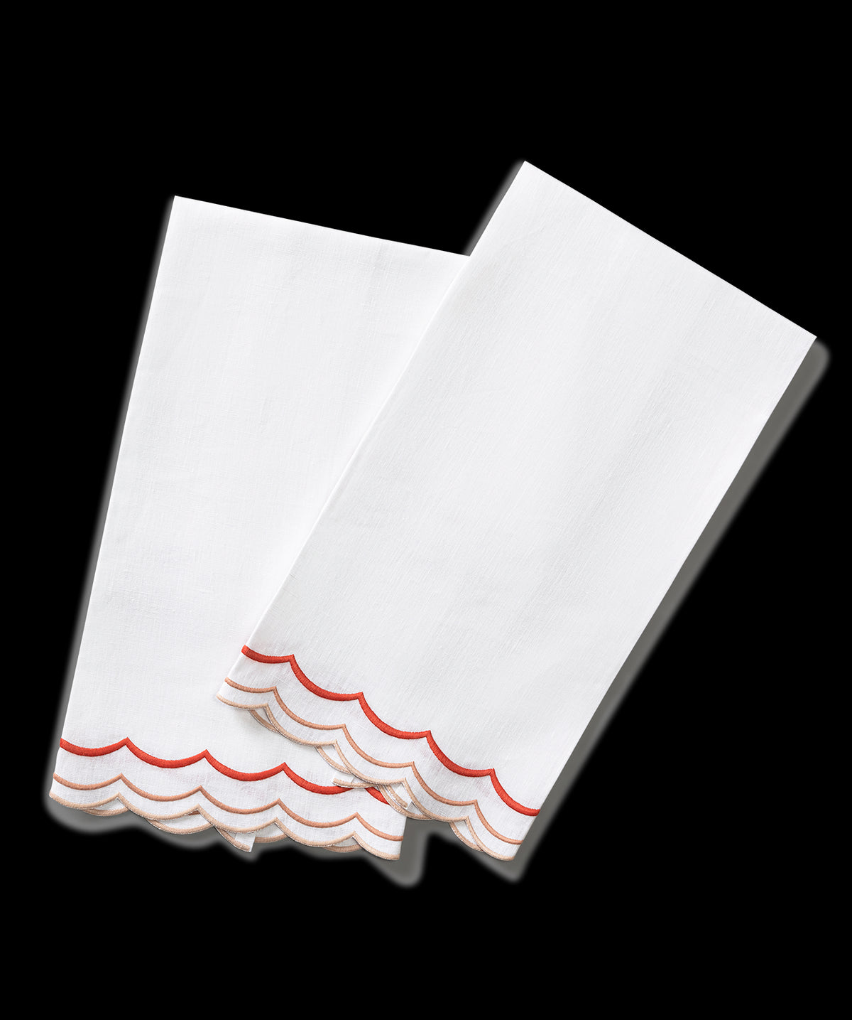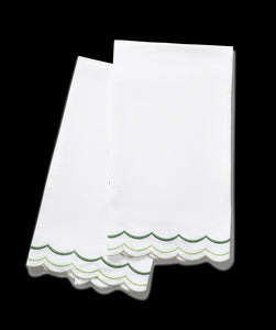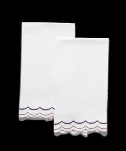 For nearly 100 years and three generations, Matouk has handcrafted luxury linens from the world’s finest materials. Their dedicated artisans in Fall River, Massachusetts are committed to creating the highest quality, most-loved bed, bath, and table linens for your home. The India Three Guest Towels, Set of 2 owes its charming sophistication to its original embroidery, featuring a narrow, scalloped flange and carefully stitched lines in distinct tones.