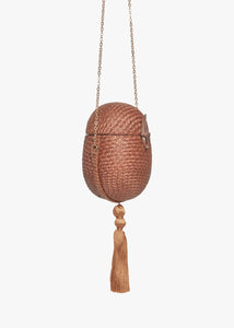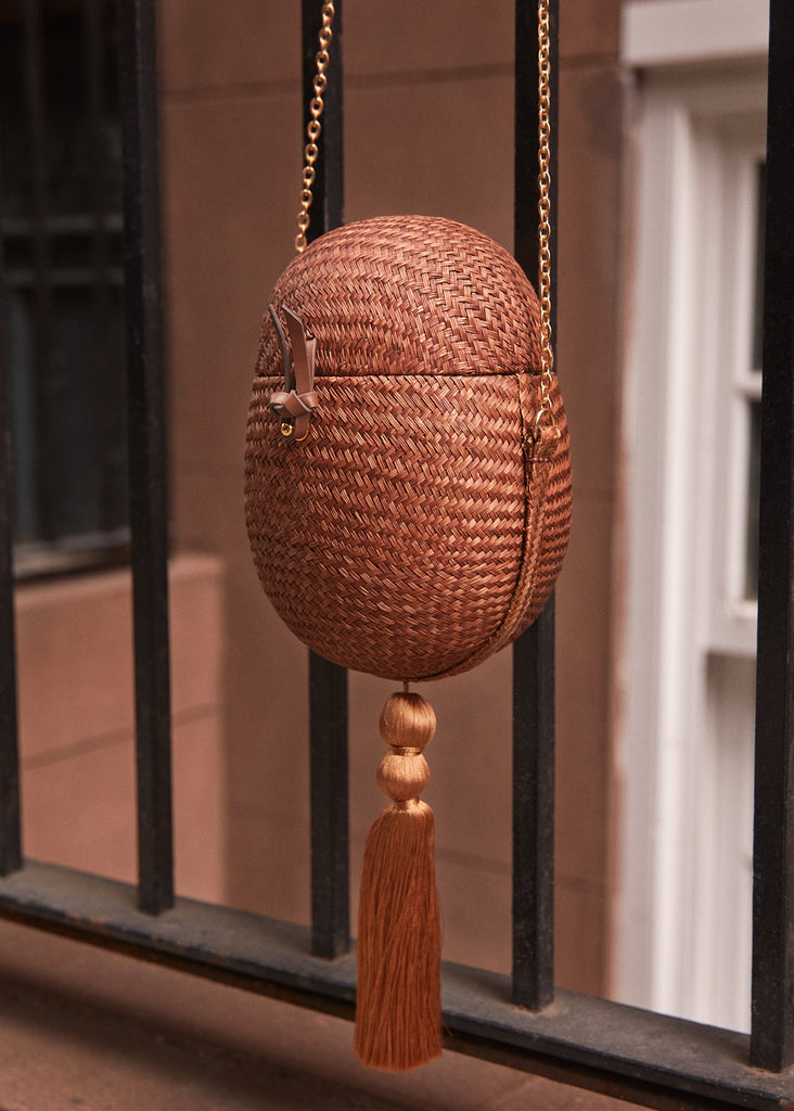 Designer Jamie Lim grew up in South East Asia, surrounded by the batik kaftans worn by her mother, and handmade rattan dining chairs. As she witnessed these artisanal goods be replaced by mass produced synthetics, Jamie created Kayu as a means to offer timeless personal and home accessories, made with the finest natural materials, and preserve indigenous craft. Elevate any outfit with the Itza Straw Egg Clutch Bag with coordinating tassel.
