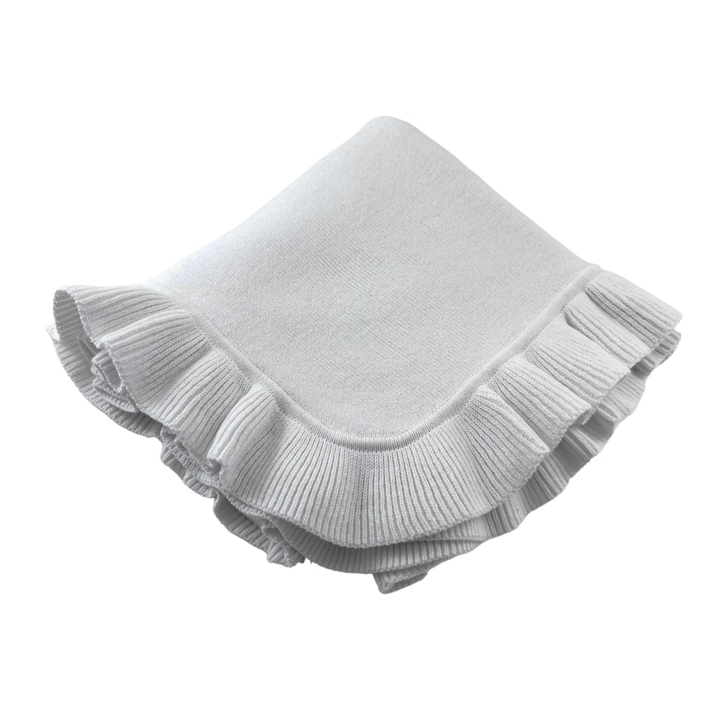 Founded by Claudia Vargish and based in Connecticut, A Soft Idea combines quality, comfort, and craftsmanship through luxurious cottons, chenilles, and imported yarns inspired by Italian and Spanish weaves. The Jersey Knitted Ruffle Blanket brings a touch of elegance to everyday comfort. Crafted in China from 100% cotton, it features a soft jersey knit texture finished with a delicate ruffled edge—ideal for wrapping, layering, or displaying in the nursery.
