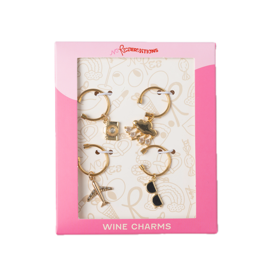 Travel the world without ever losing your glass. Our JetSetter Wine Charm Bundle, Set of 4, is designed for the wanderlust hostess who loves to toast in style. Each charm draws inspiration from iconic travel essentials, making it a chic and conversation-worthy addition to any gathering. Whether it’s a girls’ trip, destination party, or cozy night in, these charms add a global touch of elegance while keeping every glass easy to spot. Beautifully packaged and ready to gift, it’s a must-have for the stylish traveler.