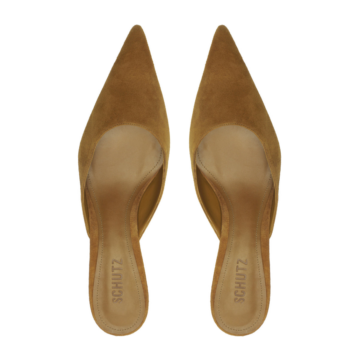 Founded in 1995 by Alexandre Birman, Schutz redefines attainable luxury with its stylish footwear. With each new release, the brand delivers of-the-moment collections, defined by confident, bold, designs around which entire outfits can be built. The Julie Suede Pump in Dried Pistachio strikes the ideal balance between polish and ease. With a pointed toe, mid-heel, and streamlined mule silhouette, it’s made for quick exits, confident strides, and effortless impact—no straps, no limits.