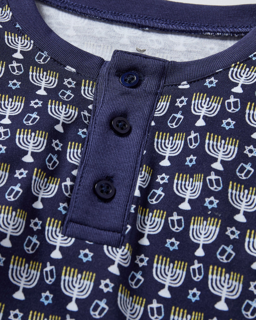 Petite Plume wishes you a “bonne nuit,” and in their luxury sleepwear, it’s hard not to oblige. The Kid's Pima Snug Fit Pajama Set in Festival of Lights honors timeless traditions with a classic navy and white print featuring menorahs and dreidels. Designed as a keepsake style to celebrate the season, this long sleeve top and pant set provides a secure, snug fit—allowing freedom of movement for active little ones while creating a cozy silhouette for cooler months. Coordinating styles for the whole family make this a festive favorite.