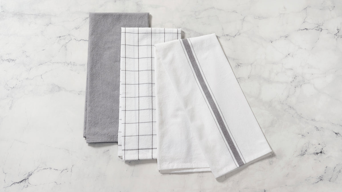 Set of 3. Crafted from 100% premium cotton for softness, durability, and absorbency. Each towel features a distinct design to complement a range of kitchen aesthetics. Oversized format provides ample coverage for drying dishes, handling hot cookware, or everyday cleanup. Includes center locker-loop for easy hanging and storage.