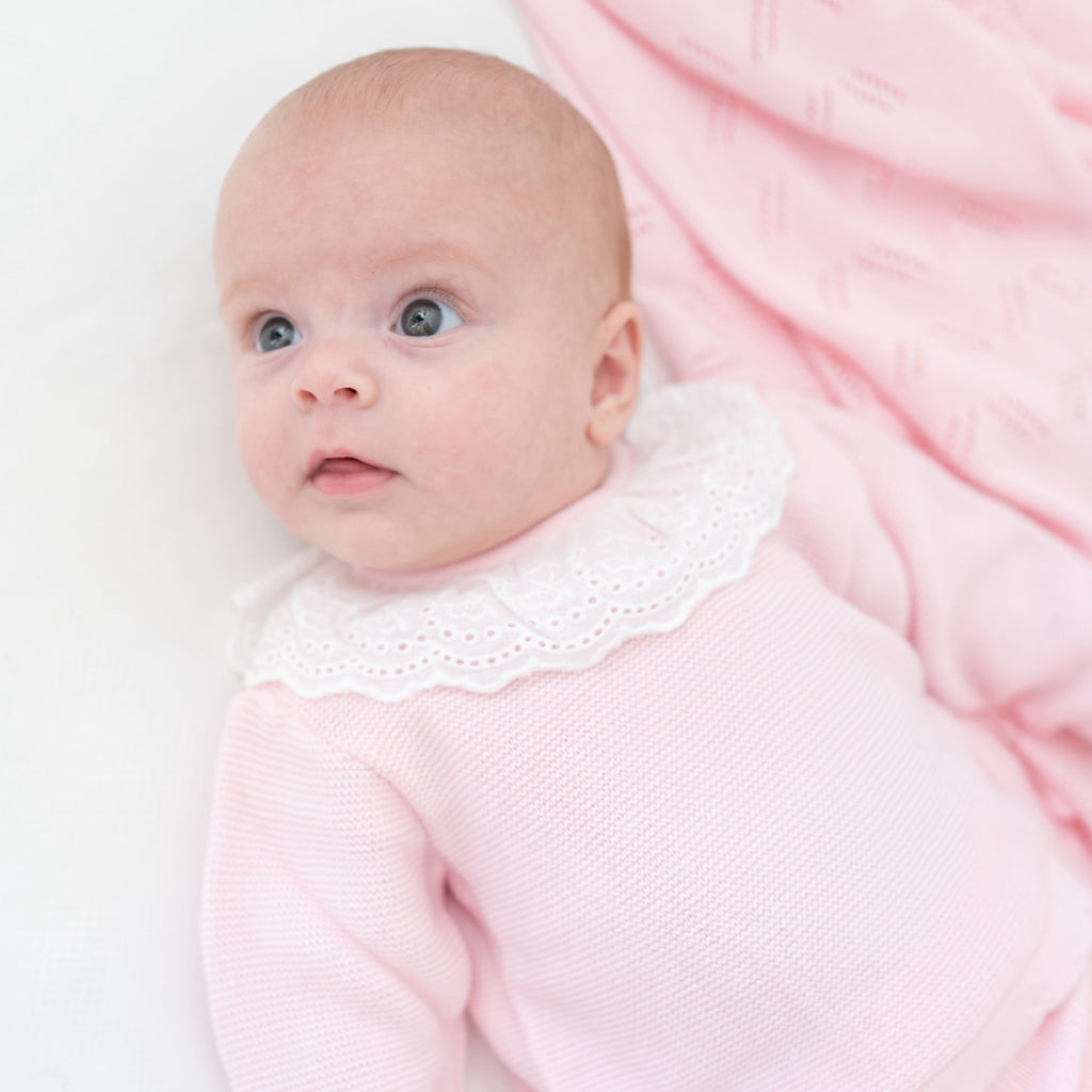 Inspired by the beauty of motherhood, Dondolo is a luxury lifestyle brand that provides beautiful, heirloom-quality clothing for generations to come. Each design is thoughtfully crafted in Colombia with ethical manufacturing, making every piece even more special. The Knit Baby Girl Sweater & Stockings Set in Pink is a cozy and classic newborn ensemble, made to celebrate life’s earliest and sweetest moments. Featuring a delicate bib collar, soft knit texture, and matching stockings, this set is a lovely choice for gifting, hospital days, or quiet cuddles at home.