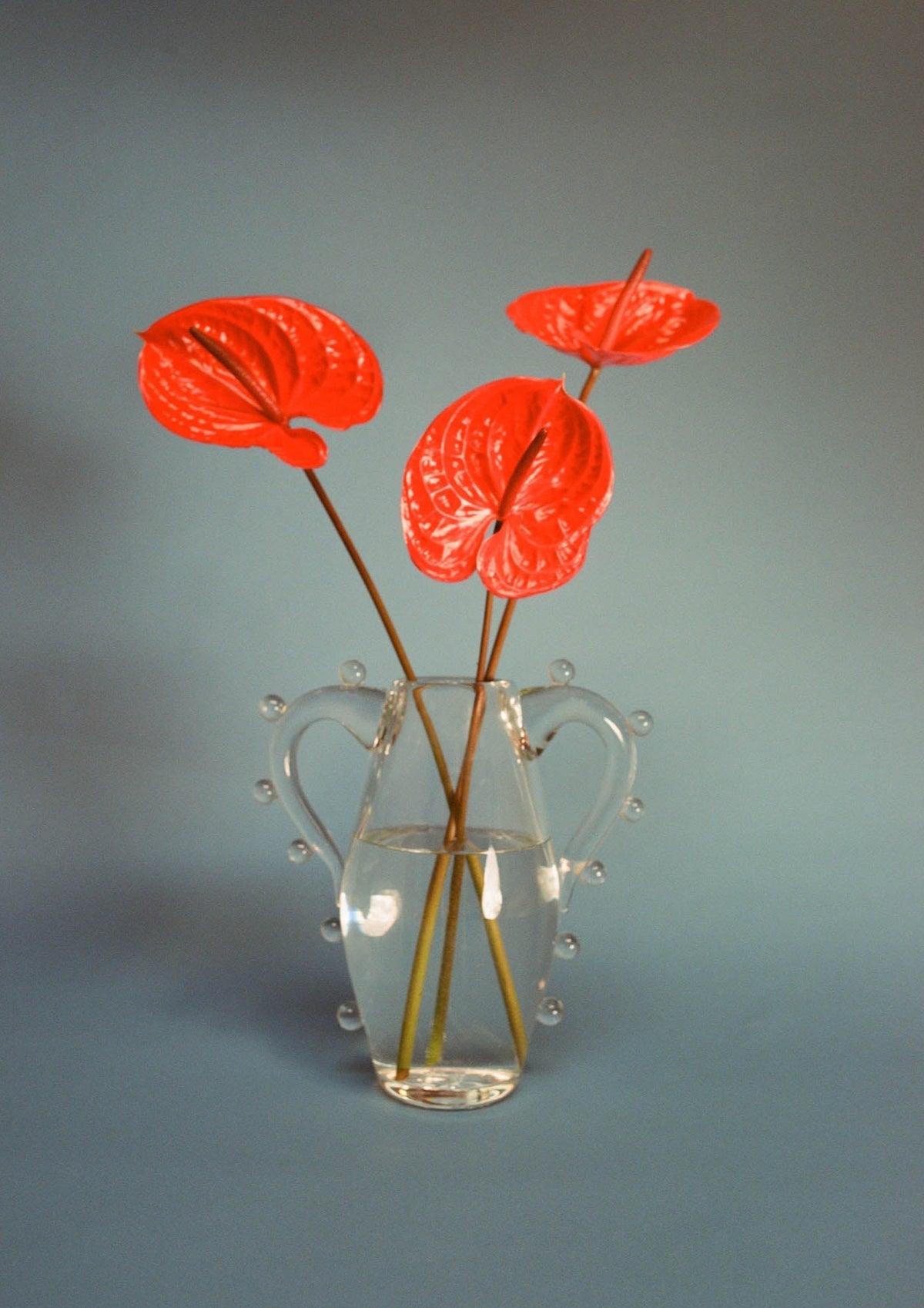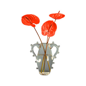 From her studio in New York City, French-American designer Sophie Lou Jacobsen explores the relationship between humans and objects by imbuing each of her unique glass pieces with elements of surprise and delight, creating a visual poetry around the rituals of our everyday. Crafted in hand-blown glass, the novel curvature and ornate handles of the La Vitalite Vase makes it a delightful display for seasonal flowers or cuttings; we love it as a centerpiece.