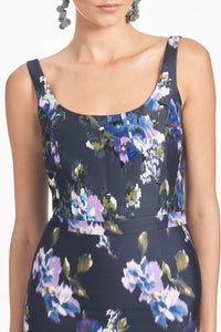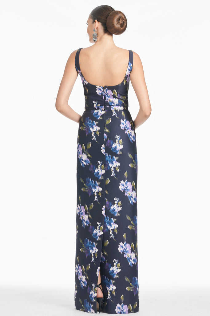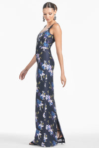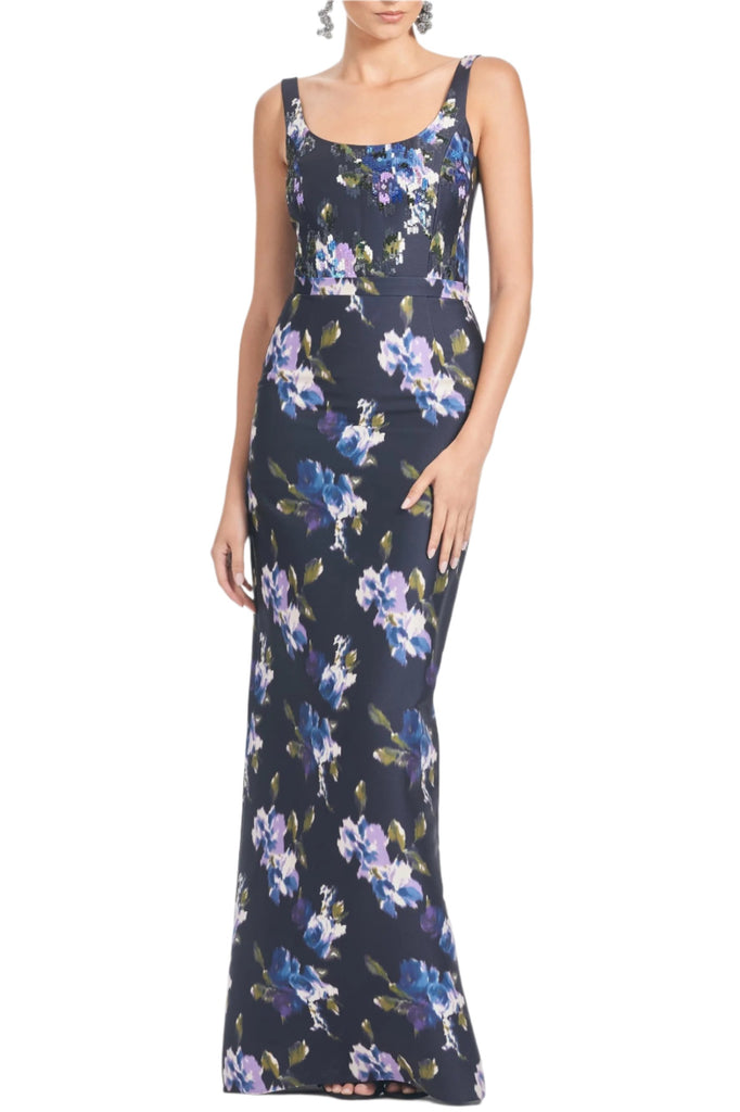 Born in India, Sachin and Babi bonded at New York’s Fashion Institute of Technology and soon launched an embroidery business that worked with top houses, like Oscar de la Renta, and Manolo Blahnik. Today, the brand works with their own factory in Mumbai, controlling quality at every stage, and producing womenswear that is at once unique, beautiful, and wearable. Sachin & Babi believe in celebrating every day, dressing with joy, and creating clothes that inspire beauty and confidence. The Lana Gown in Midnight Corsage features a beautiful poly faille fuchsia floral print with a waist belt to accentuate any figure. With a closer look, you will notice hand-beaded embellishments throughout, adding a touch of sparkle and shine.
