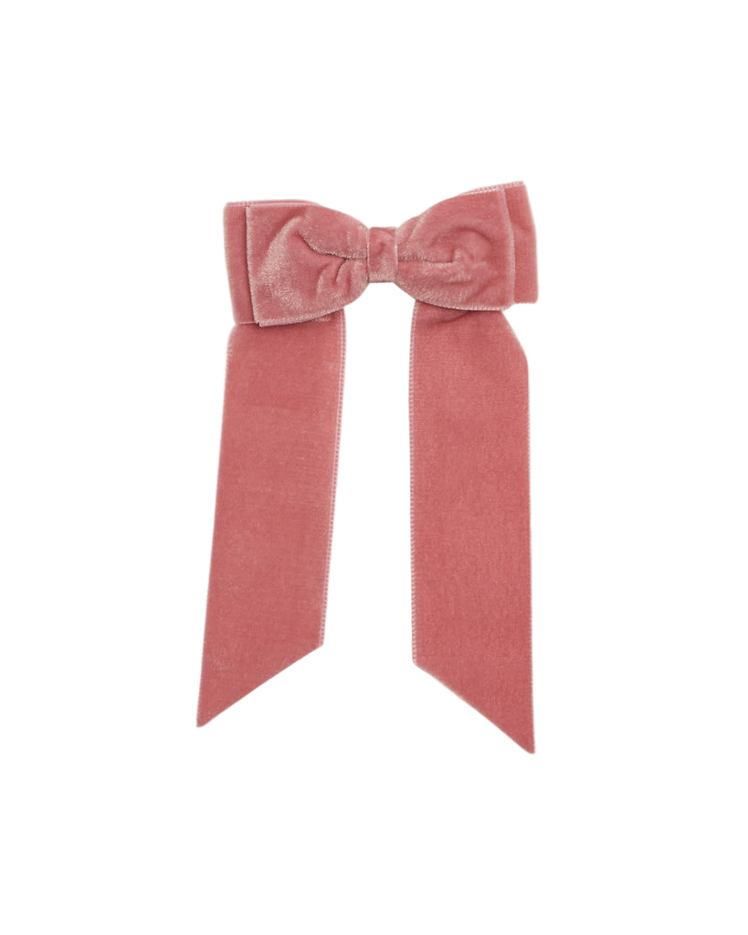 The Large Velvet Long Tail Bow in Pink adds a timeless and elegant touch to any outfit. Handcrafted from rich velvet ribbon, this beautifully tied long-tail bow is secured on a velvet-covered alligator clip for a comfortable, secure fit. A refined accessory that elevates everyday looks and festive ensembles alike—ideal as a thoughtful gift for any occasion.