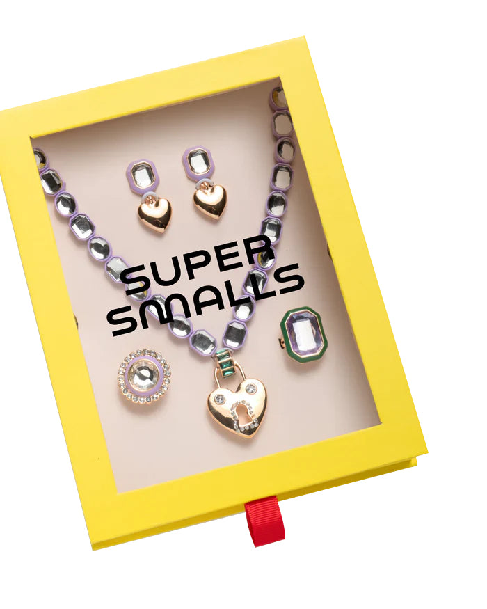 Celebrating the sparkle in us all, Super Smalls was founded by a former fashion editor with three little girls, bringing her fresh perspective—informed by the adult world of luxury, jewelry and art—to kids accessories and playthings. From a night out with mom in your fanciest outfit, to a PJ party right at home, kick things up a notch with supersized gemstones and cheerful colors of the Emerald Ball Mega Jewelry Set. Nonstop fun and fabulous.