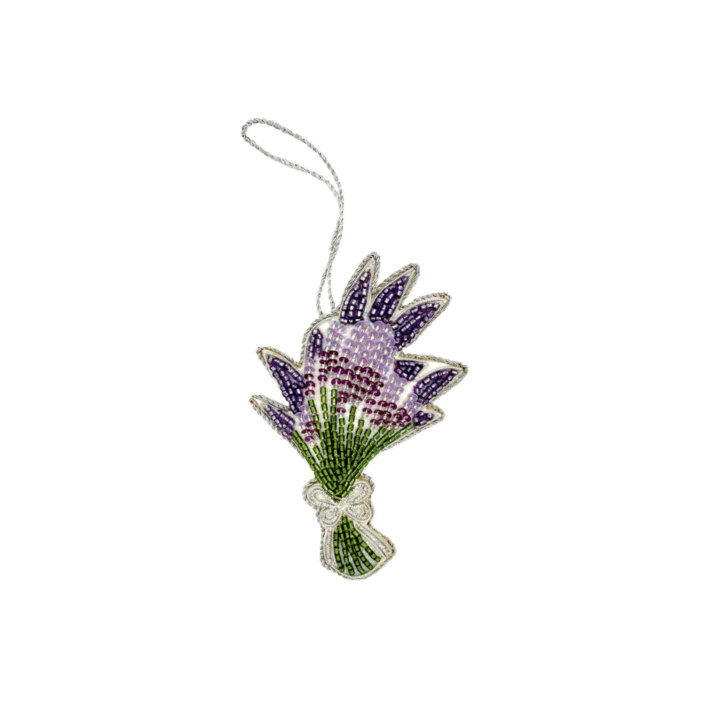Founded in 2012, Henry Handwork brings joy to the everyday with handmade textiles for the home. Placing tradition and quality at the forefront, the brand resurrects the fading craft of hand-embroidery and needlework, embracing the heritage of finely-wrought European linens. The Lavender Ornament brings soft botanical beauty to holiday décor. Featuring a hand-beaded bouquet of lavender, this delicate design adds a fragrant touch of charm and elegance to the Christmas tree.