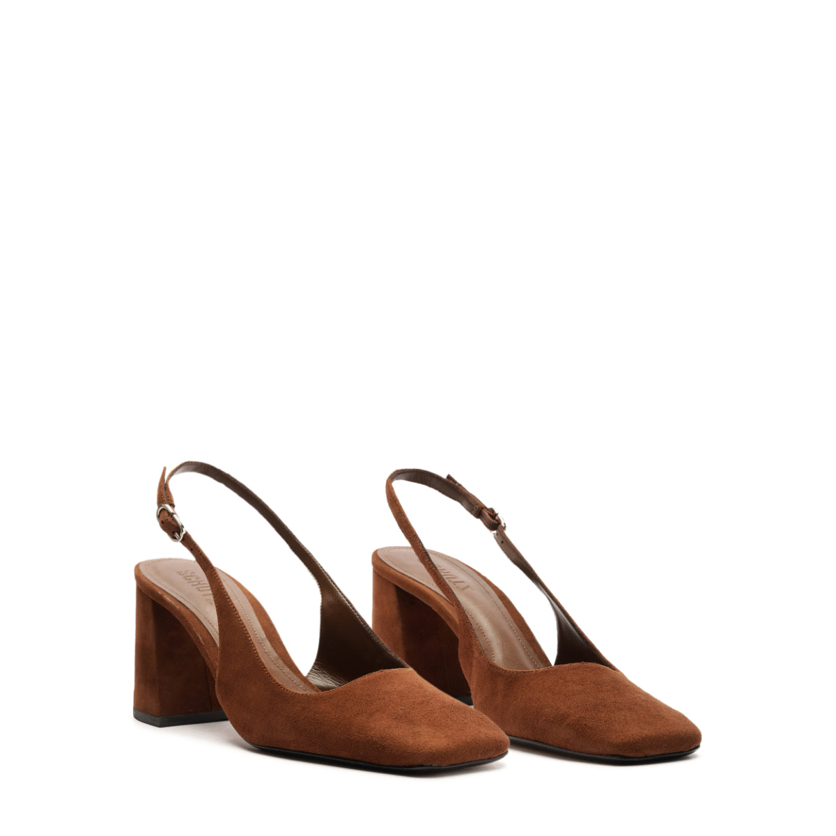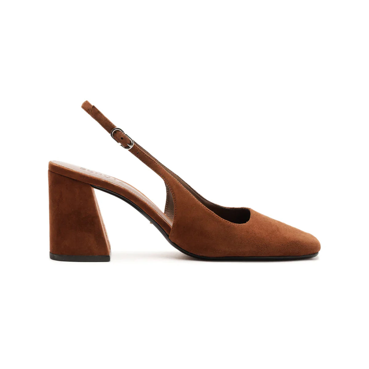 Founded in 1995 by Alexandre Birman, Schutz redefines attainable luxury with its stylish footwear. With each new release, the brand delivers of-the-moment collections, defined by confident, bold, designs around which entire outfits can be built. The Leia Block Suede Pump in Pecan Brown is sleek and structured, pairing a low-key slingback frame with a bold block heel for a look that’s polished, versatile, and unapologetically sharp.