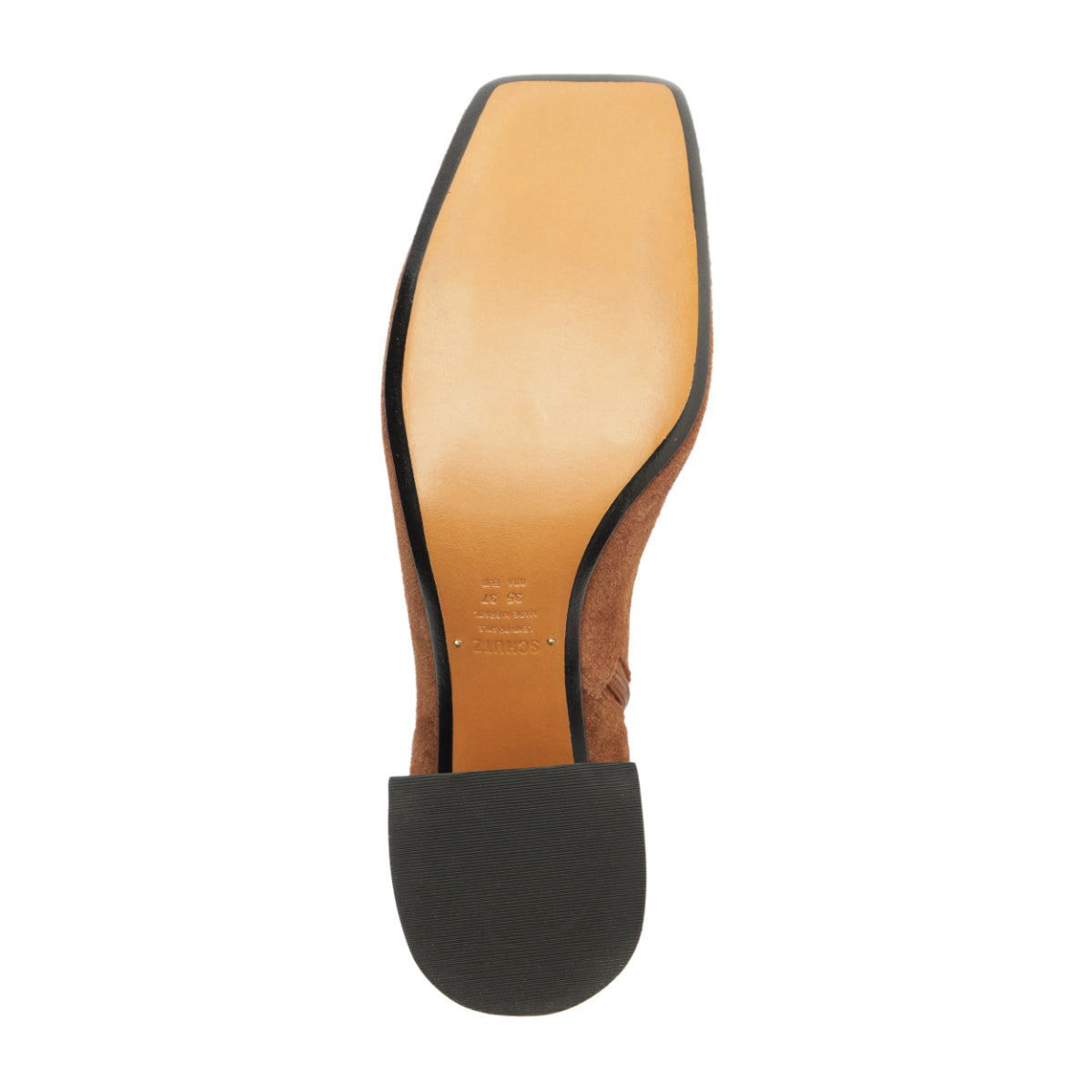 Founded in 1995 by Alexandre Birman, Schutz redefines attainable luxury with its stylish footwear. With each new release, the brand delivers of-the-moment collections, defined by confident, bold, designs around which entire outfits can be built. The Leia Suede Bootie in Pecan Brown is sleek from every angle, featuring a strong heel and square toe that create a clean, commanding silhouette designed to anchor any look with modern edge.