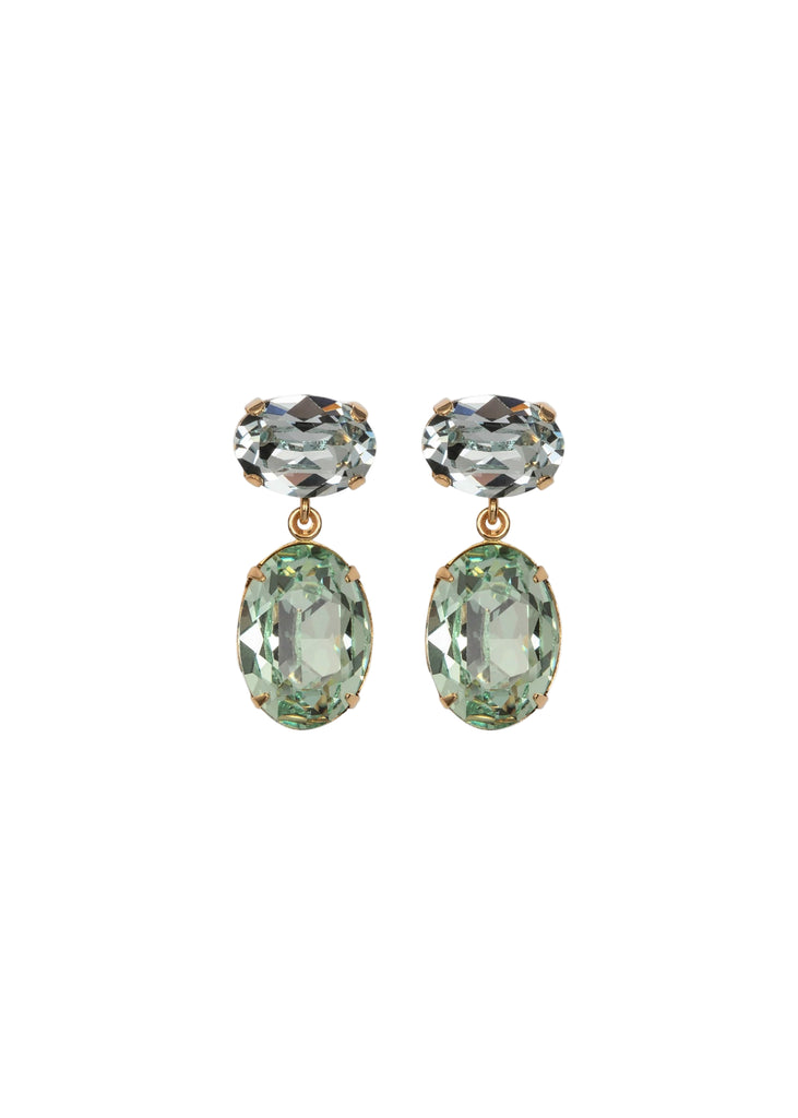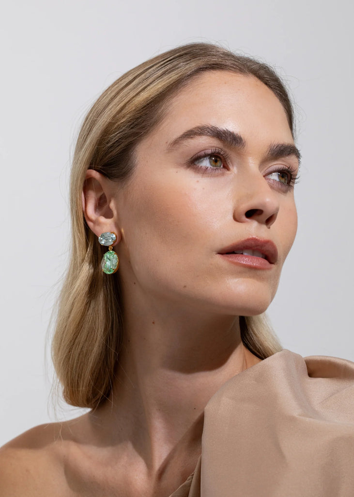 “Everything has a story to tell,” says Jennifer Behr, the founder of her namesake luxury hair accessory brand that has blossomed into one of New York City’s foremost ateliers for jewelry, as well as bridal. In every crystal, pearl, and ribbon, you’ll find the utmost quality and a sense of romance, as each piece reveals a modern interpretation of centuries-old regalia. The Lenora Earrings in Chrysolite reinterpret the grace of Georgian-era drop earrings through a contemporary lens. Crafted by hand in New York, fine Austrian crystals are set in alternating directions within an 18K gold-plated frame, creating subtle movement and timeless radiance from day to night.