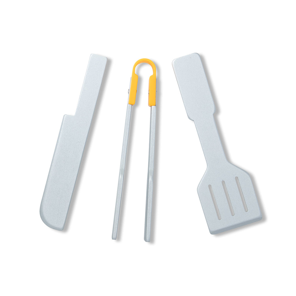 Includes 24 pieces total: wooden camp stove with turning knobs, double-sided griddle, felt and wooden play food, plates, sporks, and cooking utensils. All accessories conveniently store inside the stove for easy cleanup. Encourages creativity, fine motor skills, and a love for outdoor adventure. Recommended for ages 3 and up.