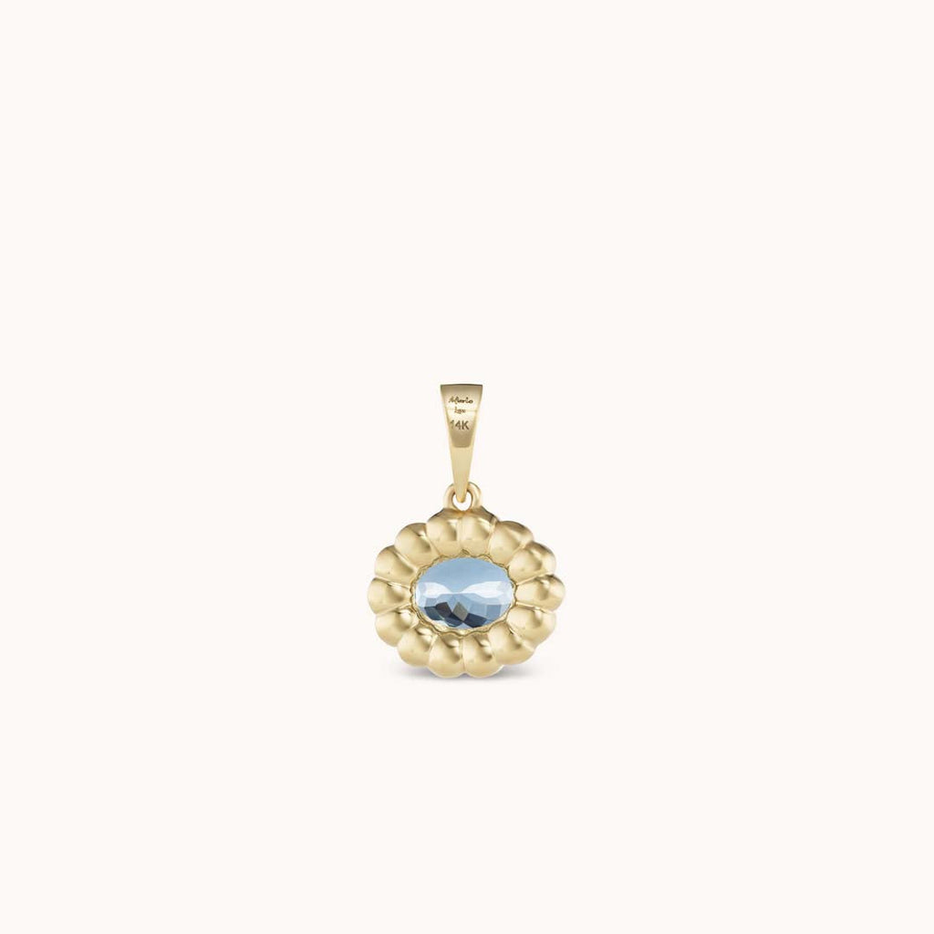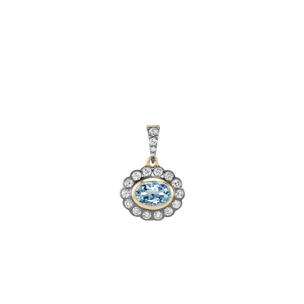 The Lexi Charm in Aquamarine draws inspiration from the signature Lexi Ring, showcasing an oval-cut aquamarine framed by a halo of bezel-set diamonds. Radiant and refined, this luminous charm brings an elevated touch to any necklace, whether worn solo or added to a personalized collection.