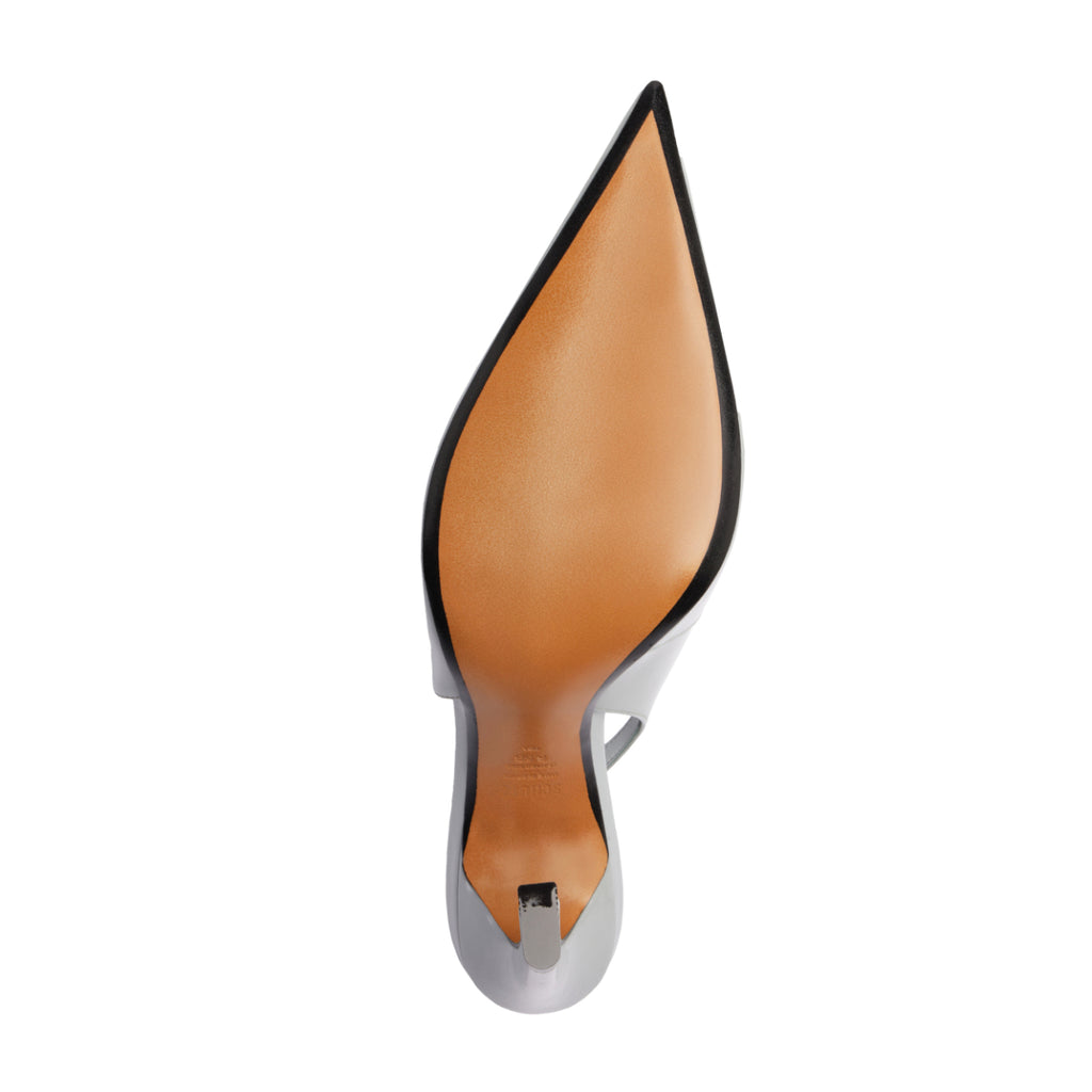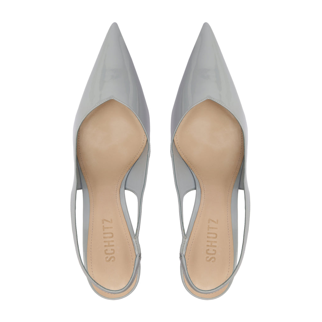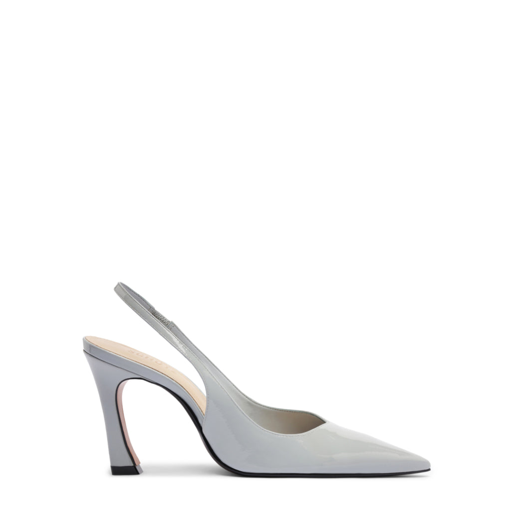 The Lexi Sling Mid Pump in Light Azure blends timeless elegance with a modern sculptural edge. Crafted in glossy light-blue patent leather, it features a pointed toe, a sleek slingback strap, and a mid-height heel that delivers lift without sacrificing comfort. A refined, minimalist silhouette that pairs effortlessly with everything from tailored separates to flowing dresses.