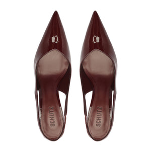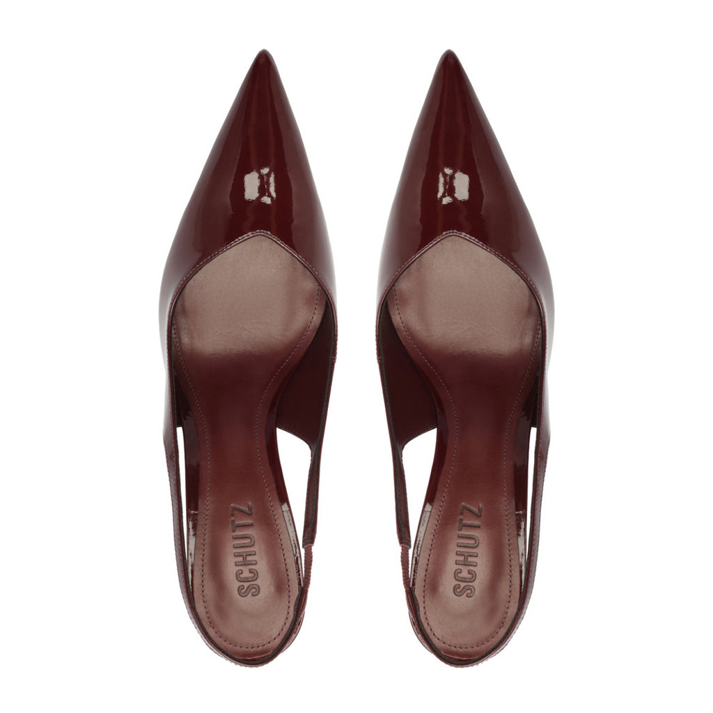 Founded in 1995 by Alexandre Birman, Schutz redefines attainable luxury with its stylish footwear. With each new release, the brand delivers of-the-moment collections, defined by confident, bold, designs around which entire outfits can be built. The Lexi Sling Patent Pump in Vino pushes boundaries with its sleek pointed toe, sculpted stiletto heel, and streamlined slingback silhouette. Made to move confidently from day to night, this glossy style is built for those who lead, never follow.