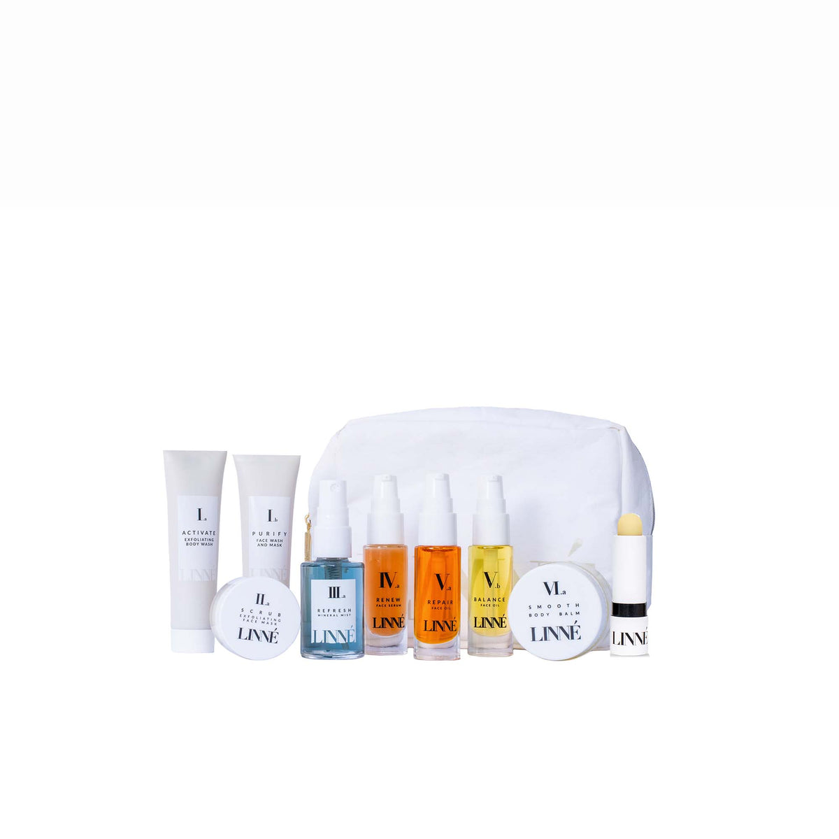 Plants, minerals, and natural ingredients are at the heart of Linné Botanicals’ line of ethically crafted skincare. Founder Jenna Levine uses only safe, non-toxic, biocompatible ingredients in her products, which are easily absorbed and processed by the body, always GMO-free, and never tested on animals. The Discovery Kit is formulated to promote clear, radiant skin. Featuring eight products in petite packaging, this set easily stows away in a weekender bag or suitcase. Open the LINNÉ pouch to uncover SMOOTH Healing Balm, REPAIR Face Oil, BALANCE Face Oil, RENEW Face Serum, REFRESH Face Mist, SCRUB Exfoliating Face Mask, PURIFY Face Wash and Mask, ACTIVATE Body Wash.