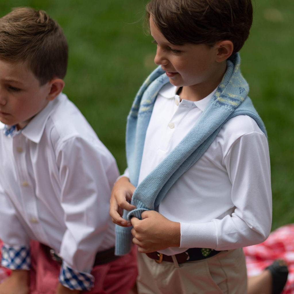 A celebration of the spirit of boyhood, the updated classics from Henry Duvall are curious, imaginative, and sweet. Full of character and playful details, these are easy to care for clothes that kids will love. The Long Sleeve Carter Polo in Classic White is the ideal, ultimate basic for any little one’s wardrobe. It is super soft and stretchy and will be a staple for years to come.