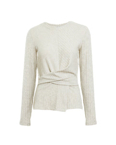 Soft knit blend. Crew neckline. Long sleeves. Twist detail at waist. Straight hem. Pull-on style. Unlined.