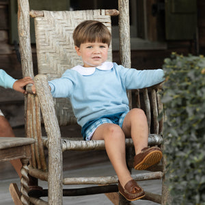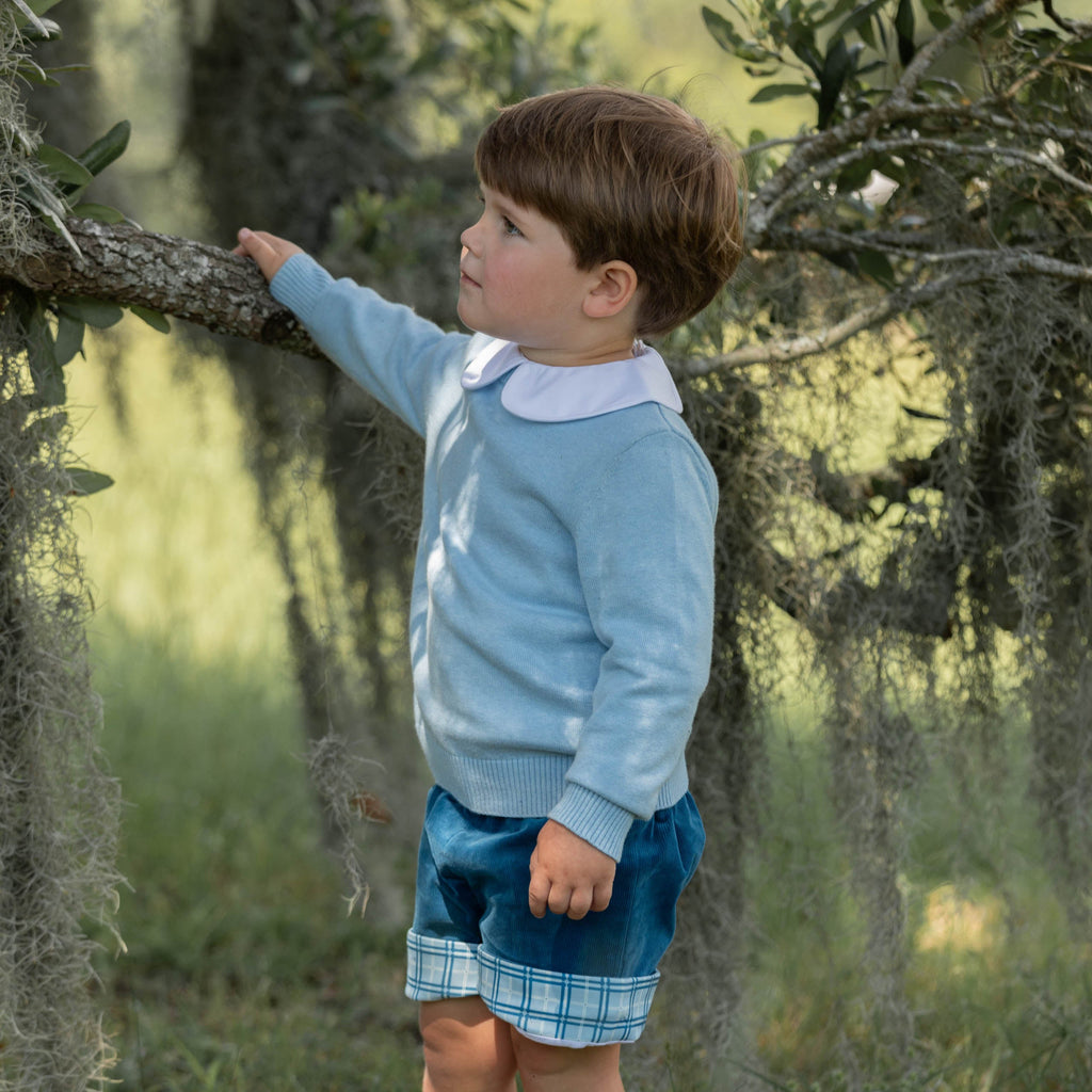 A celebration of the spirit of boyhood, the updated classics from Henry Duvall are curious, imaginative, playful and sweet. Full of character and playful details, these are easy to care for clothes that boys will love. For a special event, or just tea with grandma, the Long Sleeve Teddy Peter Pan in Classic White is incredibly soft and stretchy for easy wear, but manages to keep its shape no matter how many times you wash it.