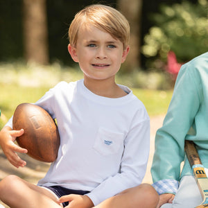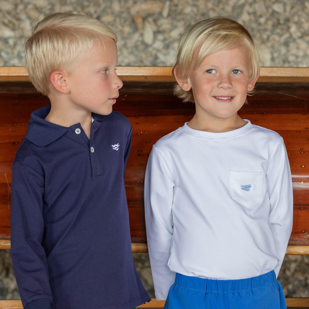 A celebration of the spirit of boyhood, the updated classics from Henry Duvall are curious, imaginative, playful and sweet. Full of character and playful details, these are easy to care for clothes that boys will love. The Long Sleeve Tucker Tee in Classic White is buttery soft and tagless for comfort, making it the ideal basic that your son or any little boy will want to wear every day.
