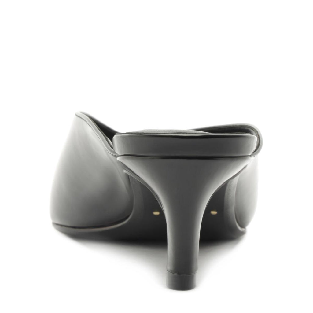 Patent leather upper. Man-made lining. Man-made sole. Mid stiletto heel. Pointed toe.
