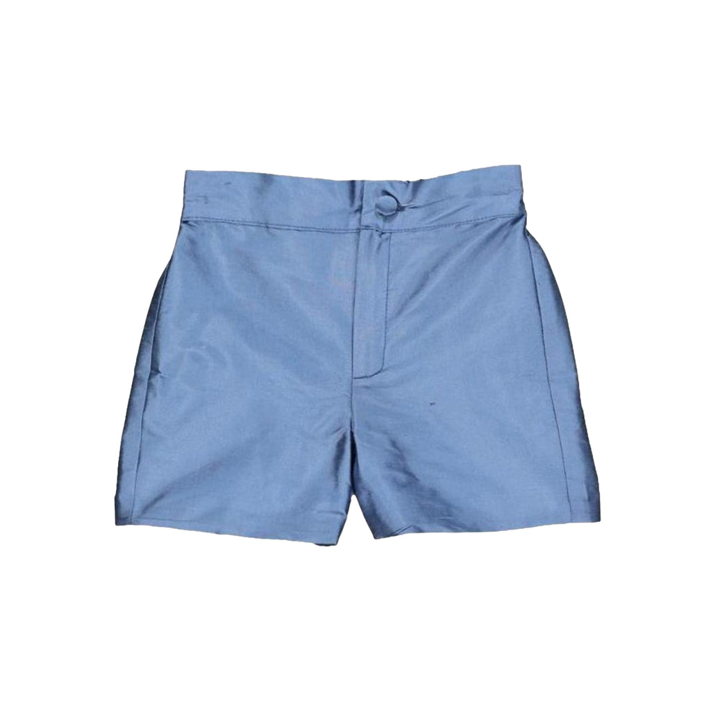 The Louis Short in Silk Blue is a refined choice for formal occasions, combining timeless tailoring with luxurious texture. Crafted from soft, lustrous silk, these boys’ shorts feature front pockets, belt loops, and a button-and-zip front fastening, along with an elasticated waistband for comfort and ease of wear. Pair them with one of Amaia’s bespoke shirts for an elegant, coordinated look that’s perfect for weddings and celebrations.